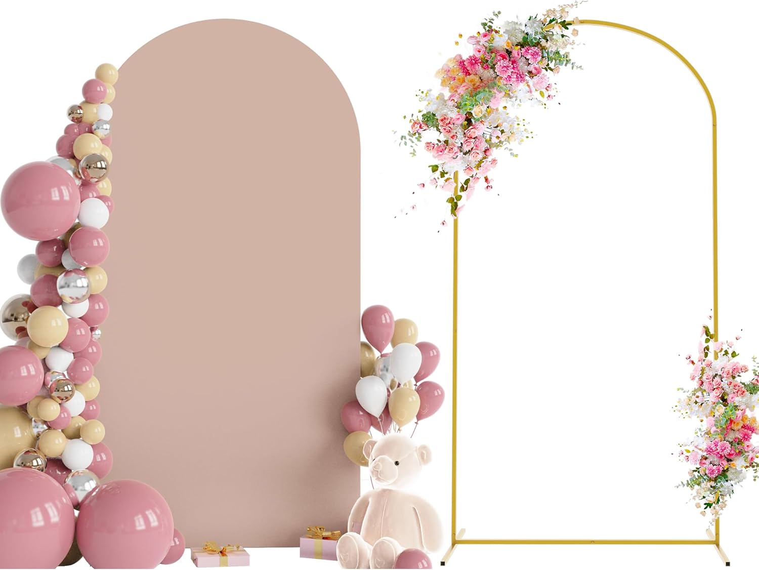 • 【Arch Stand and Covers Package】Package contains 1pcs wedding arch stand and 1pcs arch cover. Size: 6.6x3.3ft(HxW). Material: metal arch backdrop stand and spandex arch cover. Color: Nude Pink arch cover and gold wedding arch stand. Decorate your party with our gold arch stand and arch covers to create an epic decor for your celebration.