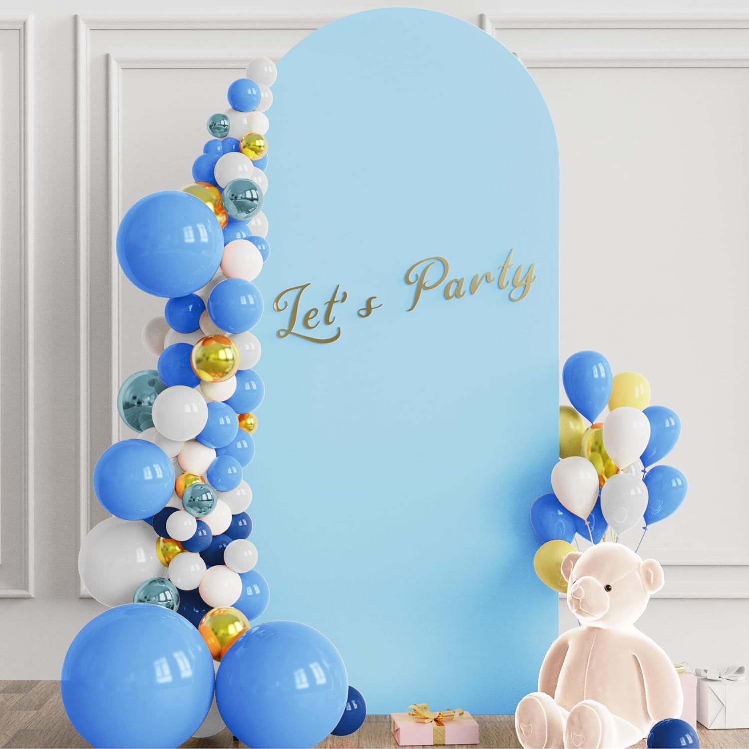 • 【Arch Stand and Covers Package】Package contains 1pcs wedding arch stand and 1pcs arch cover. Size: 6x2.6ft(HxW). Material: metal arch backdrop stand and spandex arch cover. Color: Dusty Blue arch cover and gold wedding arch stand. Decorate your party with our gold arch stand and arch covers to create an epic decor for your celebration.