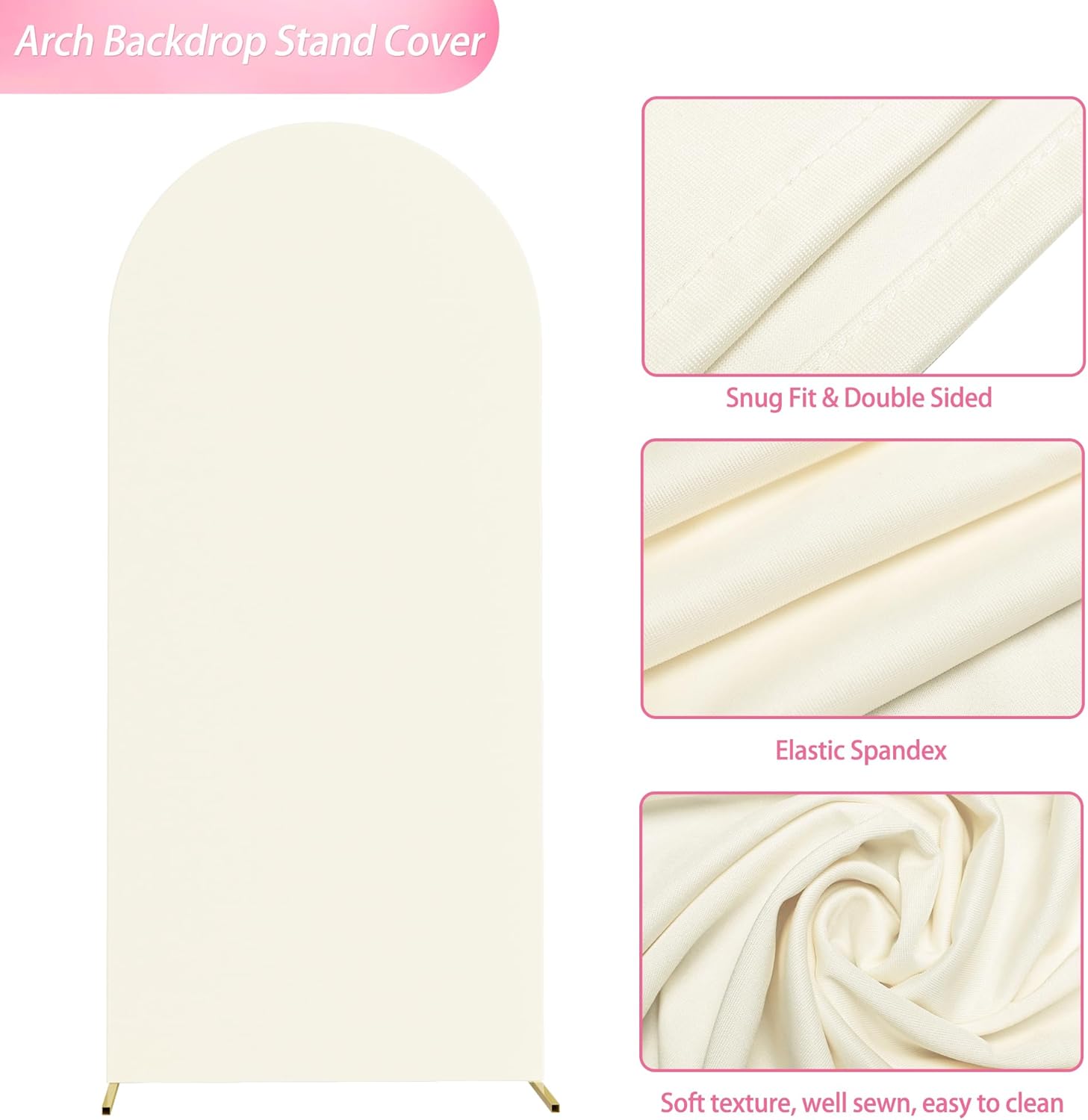 Wokceer 6 FT Wedding Arch Stand and Arch Cover, Metal Arch Backdrop Stand with Arch Stand Cover for Birthday Party Wedding Ceremony Bridal Baby Shower Event Decor, Ivory, DoorCover 0.8M-Ivory-K