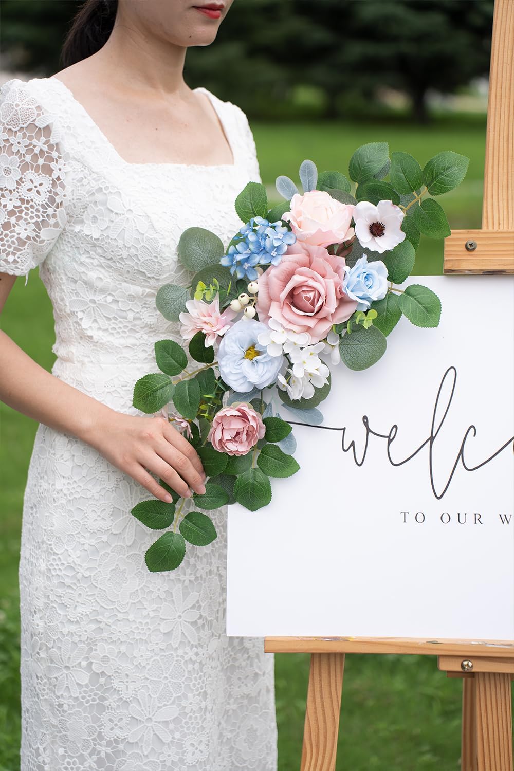 WEIERYUE(Pack of 2 Artificial Flowers Decorations,Artificial Arch Backdrop Garlandfor Ceremony Party Reception Entrance Welcome Easel Door Floral Decor Wall Home Entryway Outdoor (Soft Blue Powder)