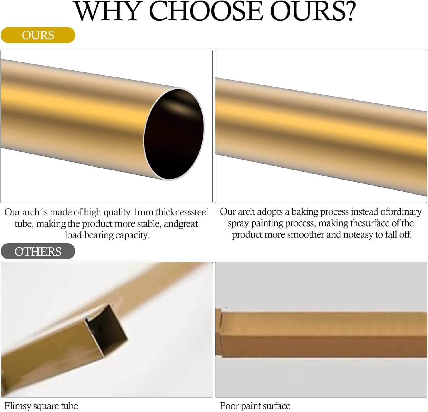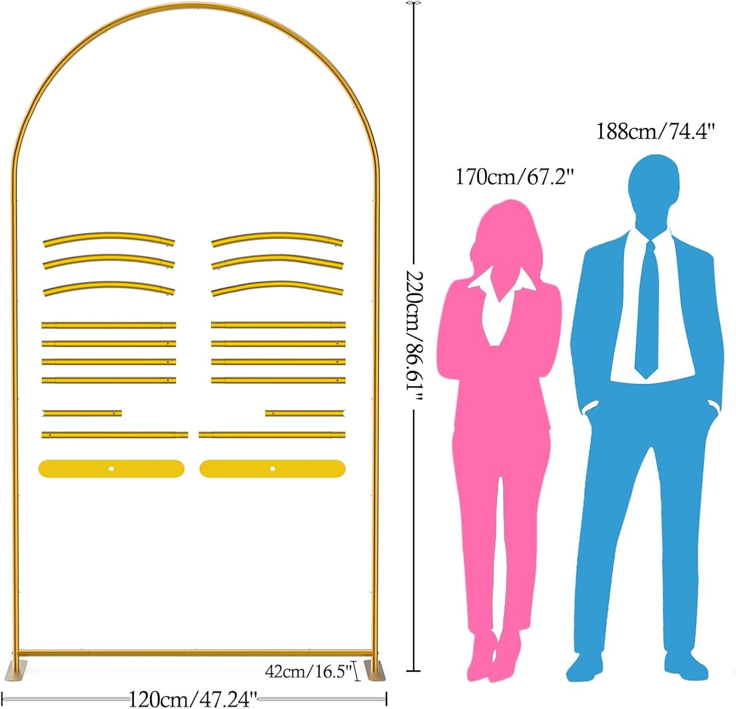 • 【Applicable to Multiple Scenarios】The Gold Balloon Arch Frame can be decorated with arch backdrop covers, balloons, flowers, plants, lights, etc. It is perfect for various events, like weddings, baby showers, bridal showers, birthday parties, garden parties, photography sessions, photo booths, commercial events, themed parties, engagement banquets, Valentine's Day, Thanksgiving, Christmas, and other special occasions. Accompanying every important moment in your life.
