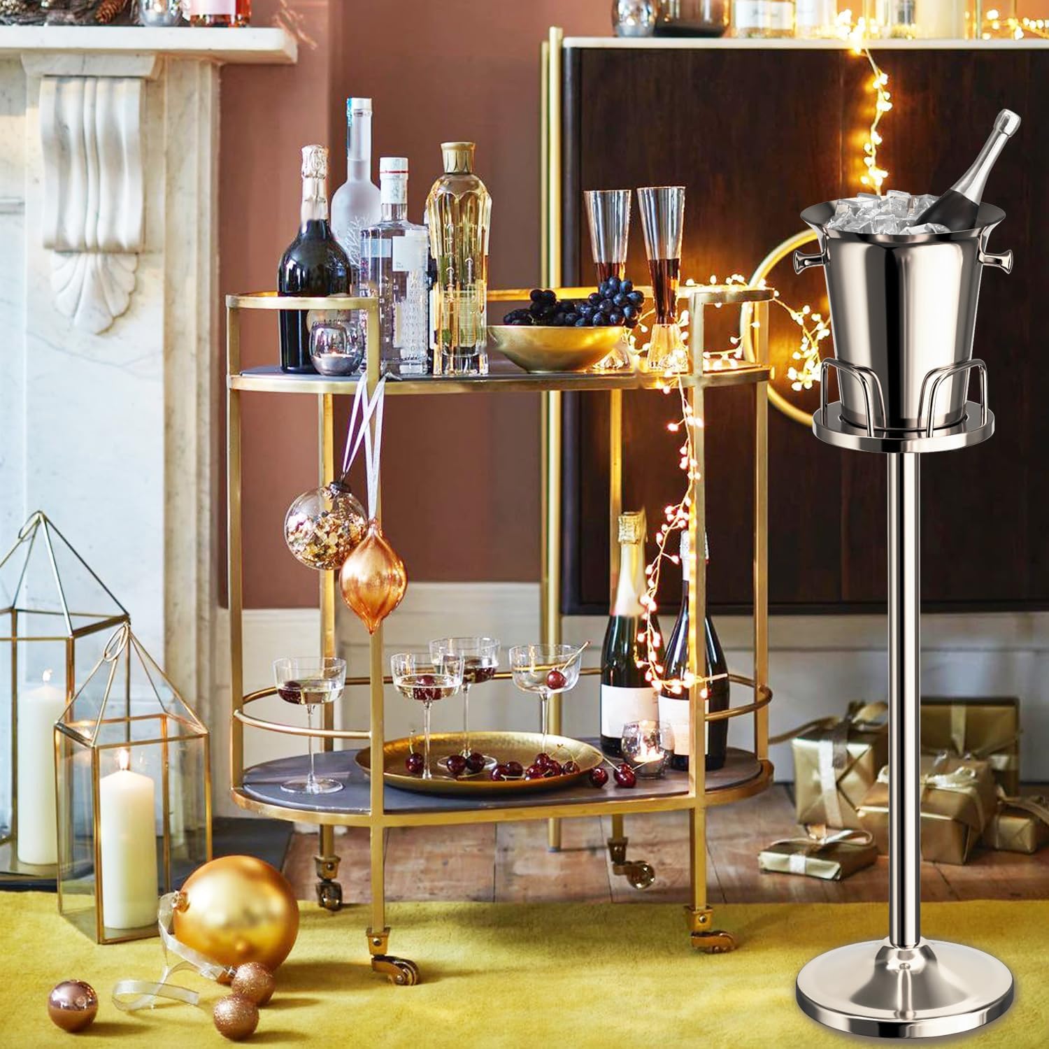Ice Bucket with Stand Standing Champagne bucket for Party Stainless Steel Wine Bucket Wine Cooler with Stand 5L Wine Chiller for Bar Ktv Weding (silver)