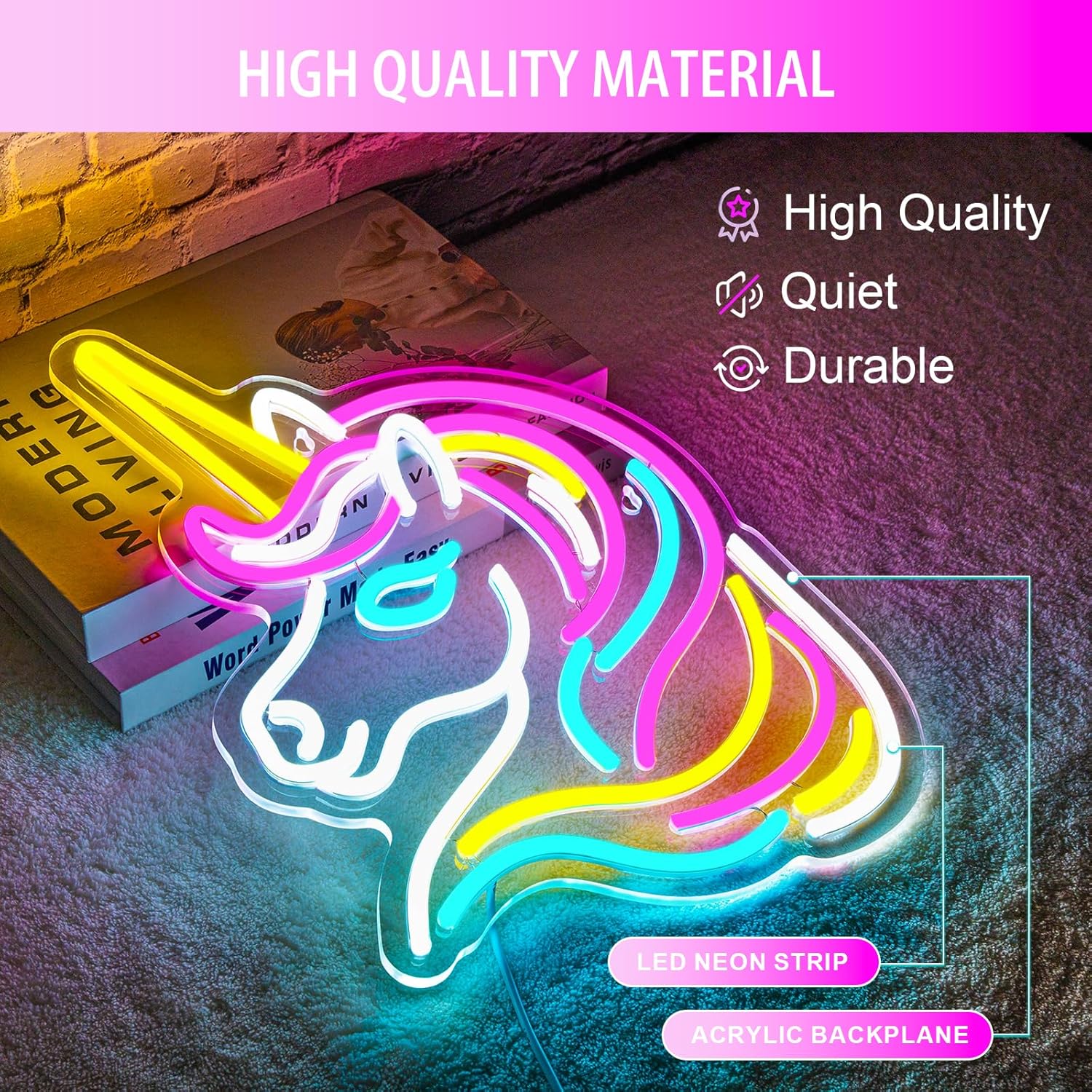 • 💎 【High-Quality LED Unicorn Signs for Girls Bedroom 】The led unicorn room sign crafted from premium acrylic, silicone light tubes, and energy-efficient LED beads, consuming minimal power. unicorn neon for room compared with the unicorn led wall sign of the glass, acrylic neon signs are safe, quiet, and durable to provide a long -lasting value for your decoration