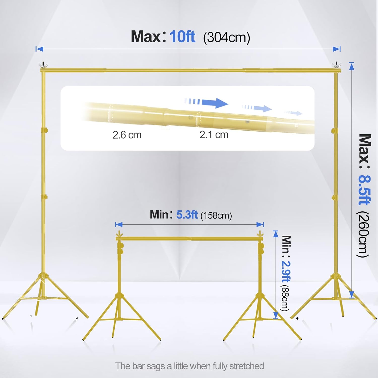 EMART Backdrop Stand 10x8.5ft(WxH) Photo Studio Adjustable Background Stand Support kit with 2 Crossbars, 8 Clamps, 2 Sandbags and Carry Bag for Parties, Events Decoration, Wedding -Titanium Gold