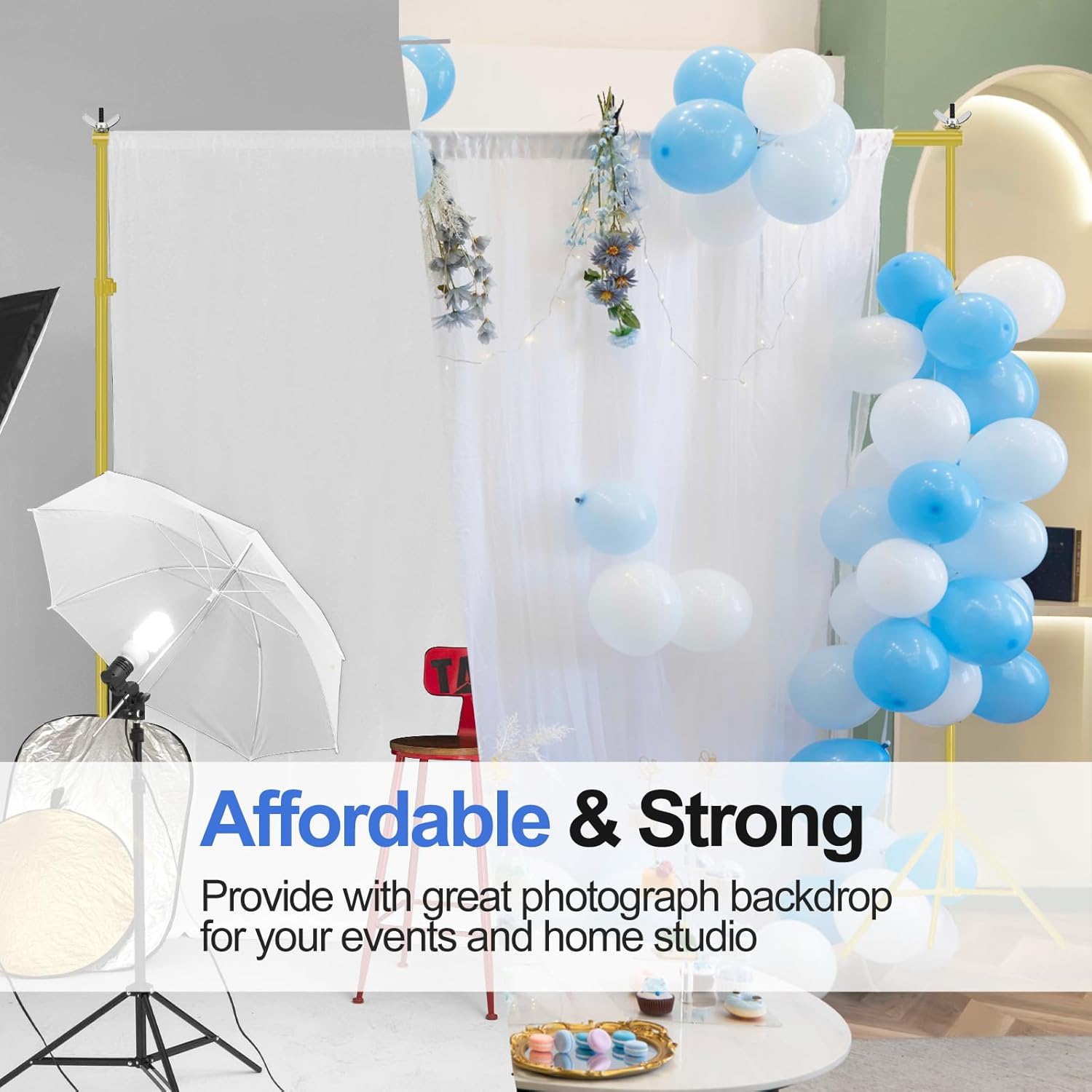 • 【Multifunctional Application】This backdrop stand kit is suitable for newborn photography, baby photo shoot, professional photo studio shooting, product display background, DIY photo booth, pet pictures, shooting video or home/wedding/parties decoration. Note: Due to gravity, the crossbar will bend slightly, It is not suggest to hang anything too heavy and kindly please use sandbags to add weight for keeping stable in windy conditions.