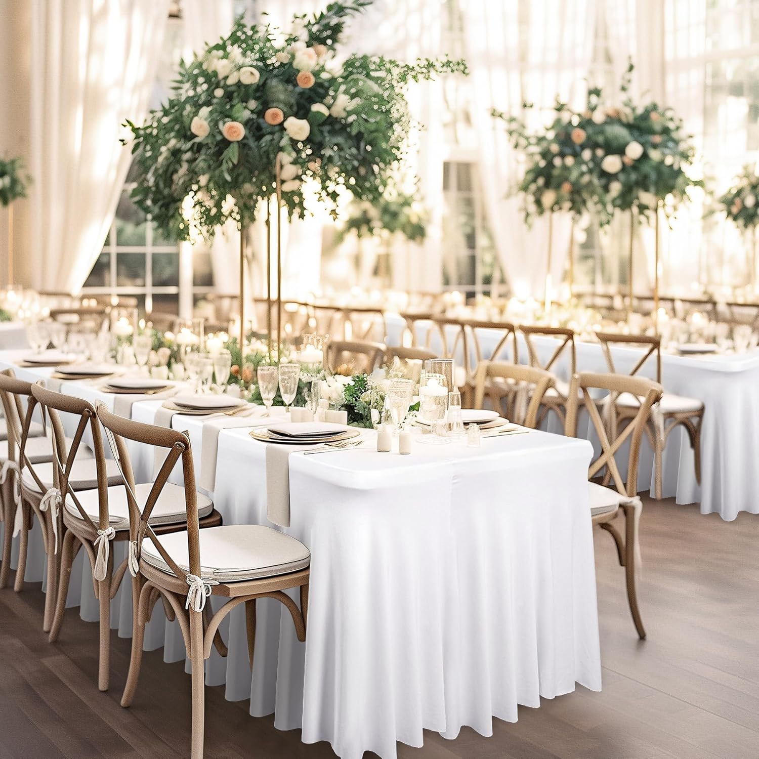 • 【Thoughtful Design】- Just pull it over the banquet or trade show table and set a table decoration in no time for a quick party setup. Decorate your table and hide supplies perfectly, giving you a neat look. The natural drooping ruffles will be the perfect addition to your event.