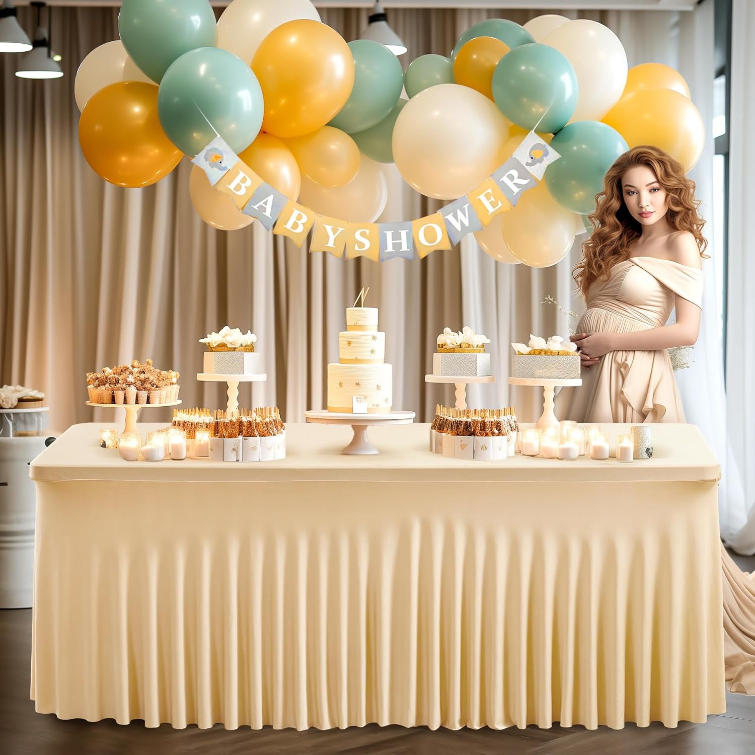 Wish Care 2 Pack Champagne Spandex Table Clothes for 4 Foot Rectangle Tables, 4FT Wrinkle Free Fitted Tablecloths Ruffles Design Table Cover for Party, Banquet, Wedding and Events