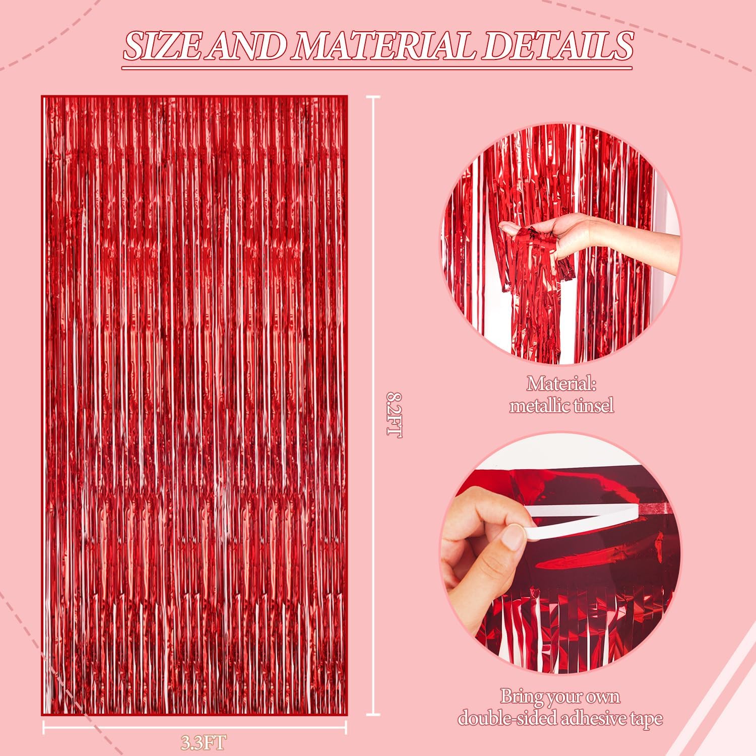 • 【3 Sets of Foil Fringe Curtains】Each package includes 3 sets of 3.3x8.2 ft foil fringe curtains, providing enough length to decorate your party with ease. Perfect for creating a stunning backdrop for any occasion.