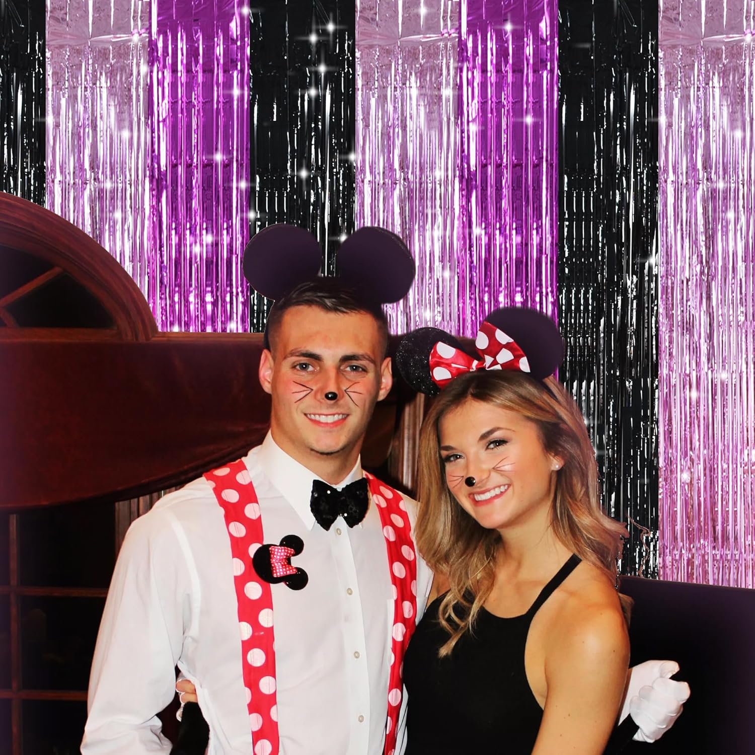 TONIFUL Black Pink Hot Pink Door Streamers,Black and Pink Photo Booth Backdrop Metallic Streamers Foil Fringe Curtain for Birthday,New Year,Graduation,Grad,Baby Shower Party Streamers Decoration