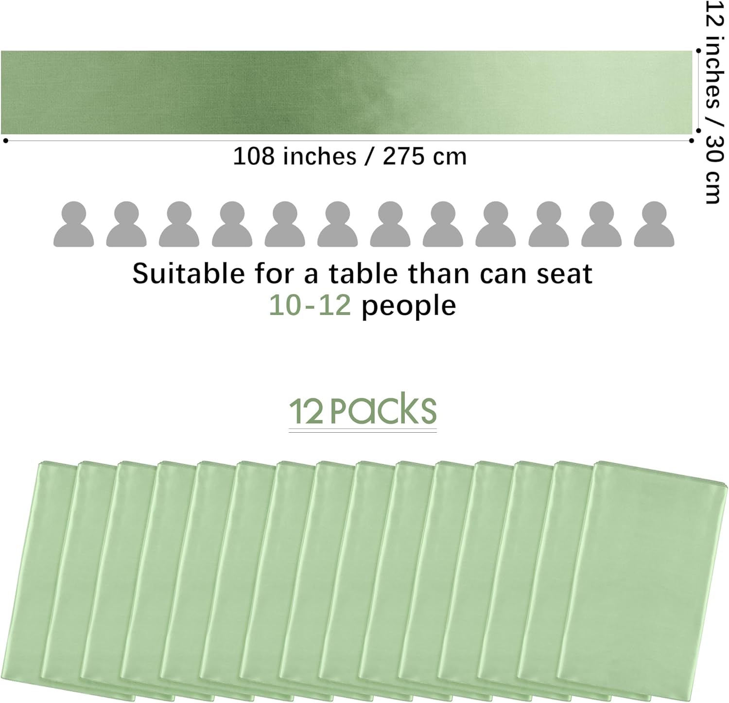 Aneco 12 Pack Satin Table Runner 12 x 108 Inch Sage Green Long Wedding Satin Silk Spring Table Runner for Wedding Banquet Graduations Birthday Party Decoration