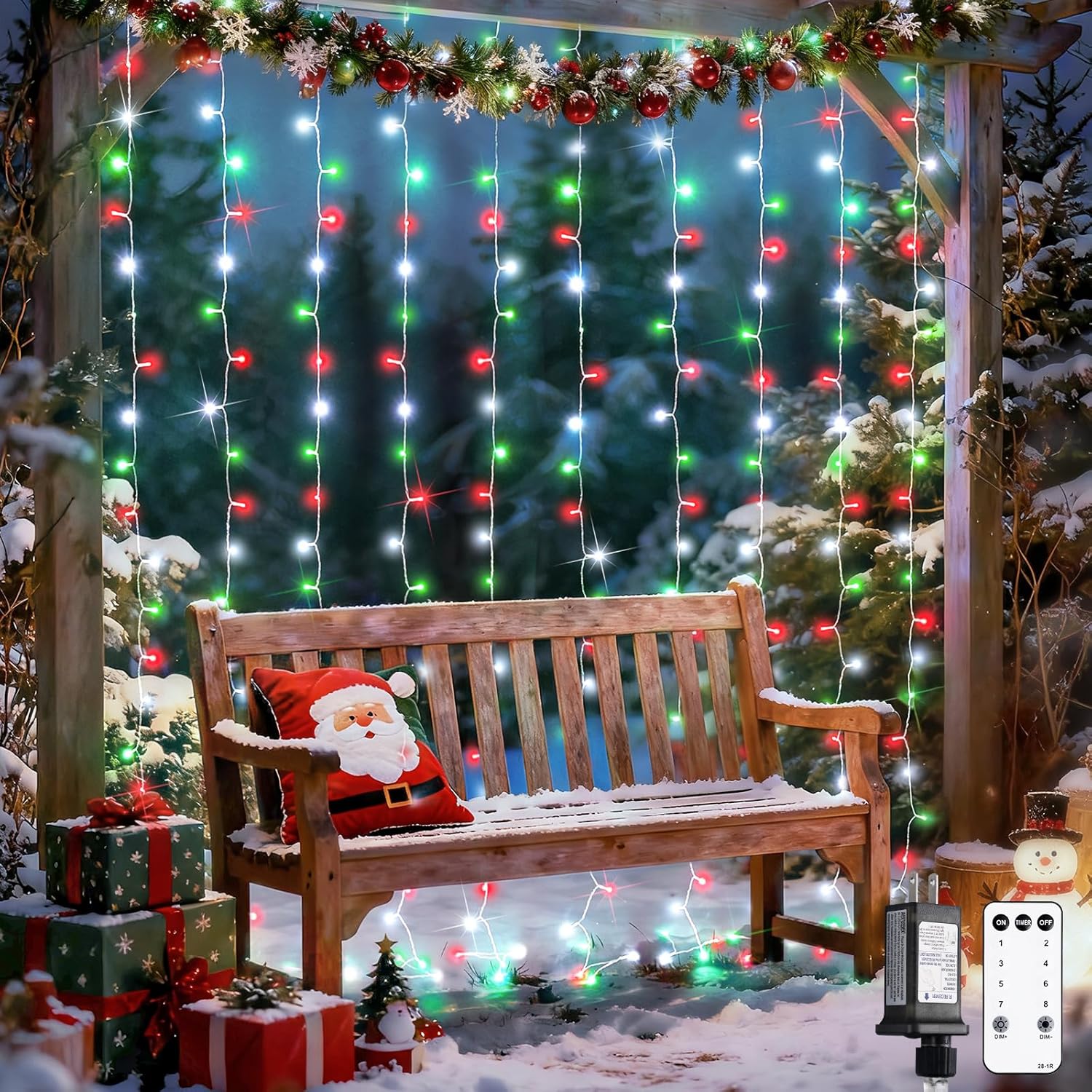 • IP44 Waterproof and Durable: The Christmas outdoor curtain lights have an IP44 waterproof rating, protecting them from rain and snow. The Christmas string lights are covered in plastic, making them more waterproof and durable than thin fairy twinkle lights. The 9.8-ft extension cord allows for easy outdoor use. These red white and green Christmas lights create decorating options for outdoor spaces. Please note that the plug is not waterproof; keep it in a dry location or use a waterproof outlet