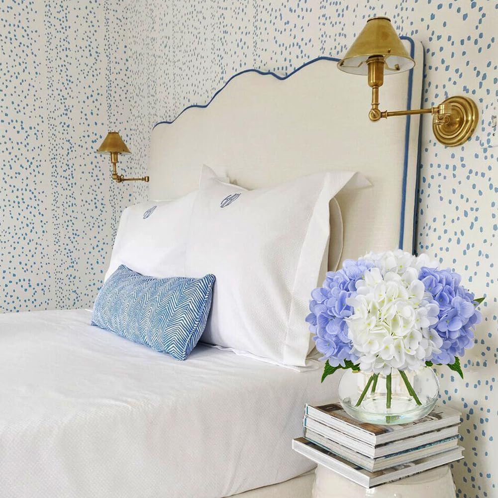 • 🌷【High-Quality Materials】Are you tired of dying flowers? Then our artificial hydrangea flowers with vivid water will be perfect for you. Fake hydrangea flowers have 4 heads and it are made of high-quality silk, combined with exquisite production technology. Unlike fresh flowers require everyday upkeep, the hydrangea fake flower can be placed and reusable in many settings for a long period without any care. They will remain fresh-looking and the same beautiful year after year.