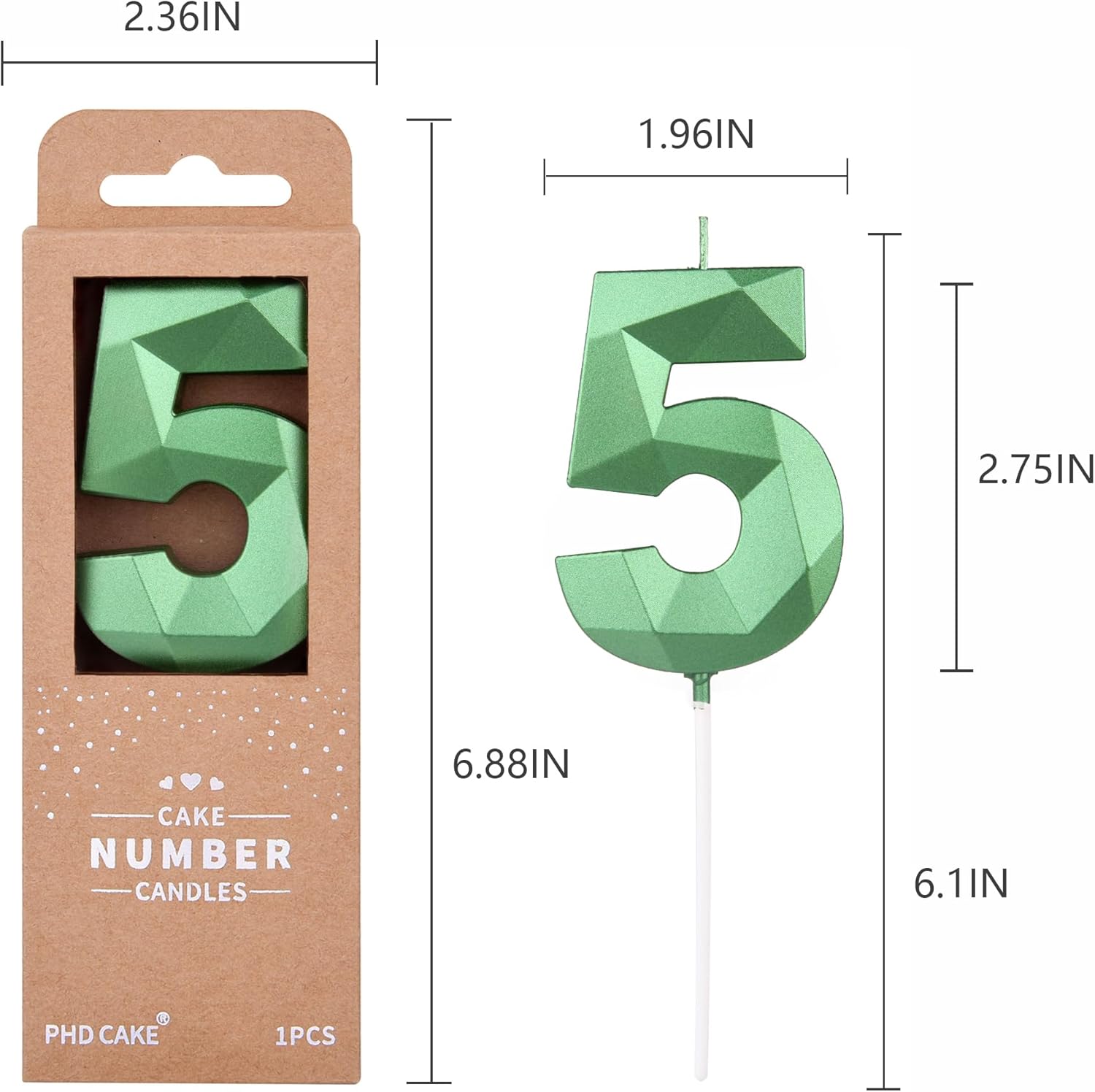 • New: 2.76 Inch Large Crystal Green 5 Number Birthday Candle designed to make your cake and birthday a unique and truly inspiring event.