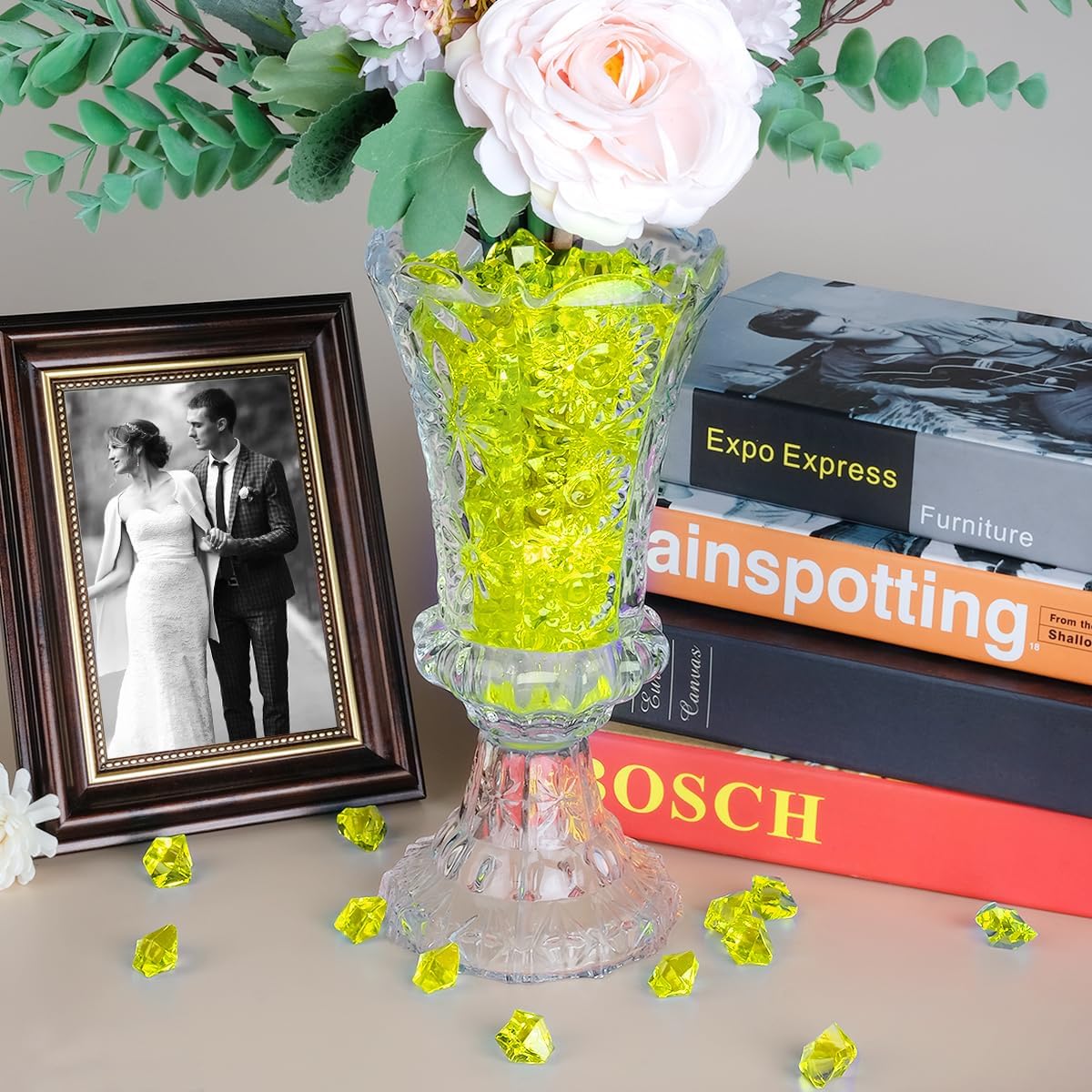 • Wide Applications Lications: Our acrylic ice cubes are widely implemented in weddings, table centerpieces, showcases, candles, photo shoot props, DIY supplies, etc. It is also perfectly used for vase fillers, air plants, fish tank decorations and can add brilliance to your indoor decoration