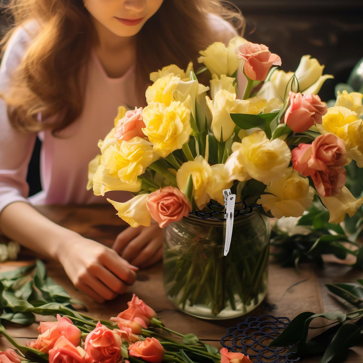 • Easy to Use: To help you arrange the flowers in a more orderly manner, we have equipped this 3 flower frogs lid with 8 medium and 8 small fixing clips. Using 2 to 4 fixing clips can prevent the flower frog lid from twisting and moving, giving you a more secure and comfortable use experience.