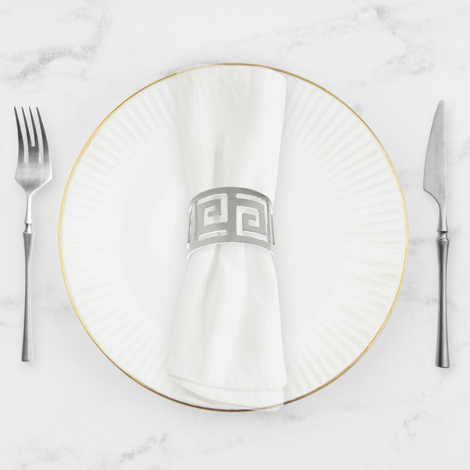 Shiny Silver Napkin Rings Set of 12, Greek Key Round, Modern Cuff Design for Wedding Party Decorations, Kitchen, Holiday Table,Rust Proof,Hotel, Home,Iron, Table Accessories for Dining,Gift