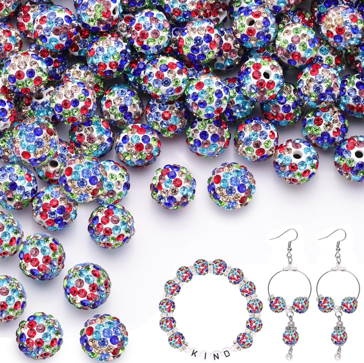 100pcs 10mm Rhinestone Beads for Jewelry Making, White Mixed Shiny Round Shamballa Disco Beads Bulk, Sparkle Crystal Clay Christmas for Bracelet Baseball Necklace Earring Crafting and DIY