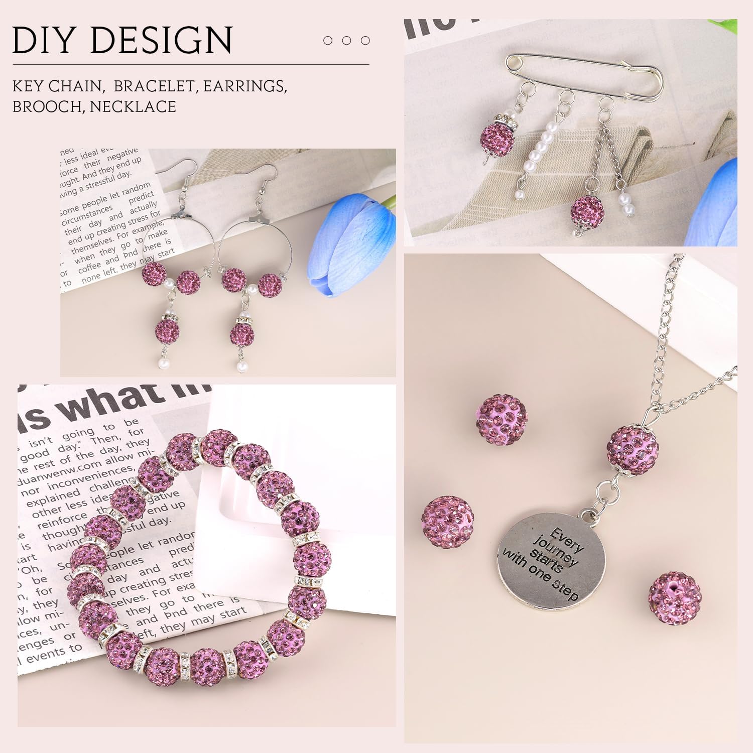 150pcs 10mm Rhinestone Beads for Jewelry Making, Light Purple Shiny Round Shamballa Disco Beads Bulk, Sparkle Crystal Clay Christmas for Bracelet Baseball Necklace Earring Crafting and DIY