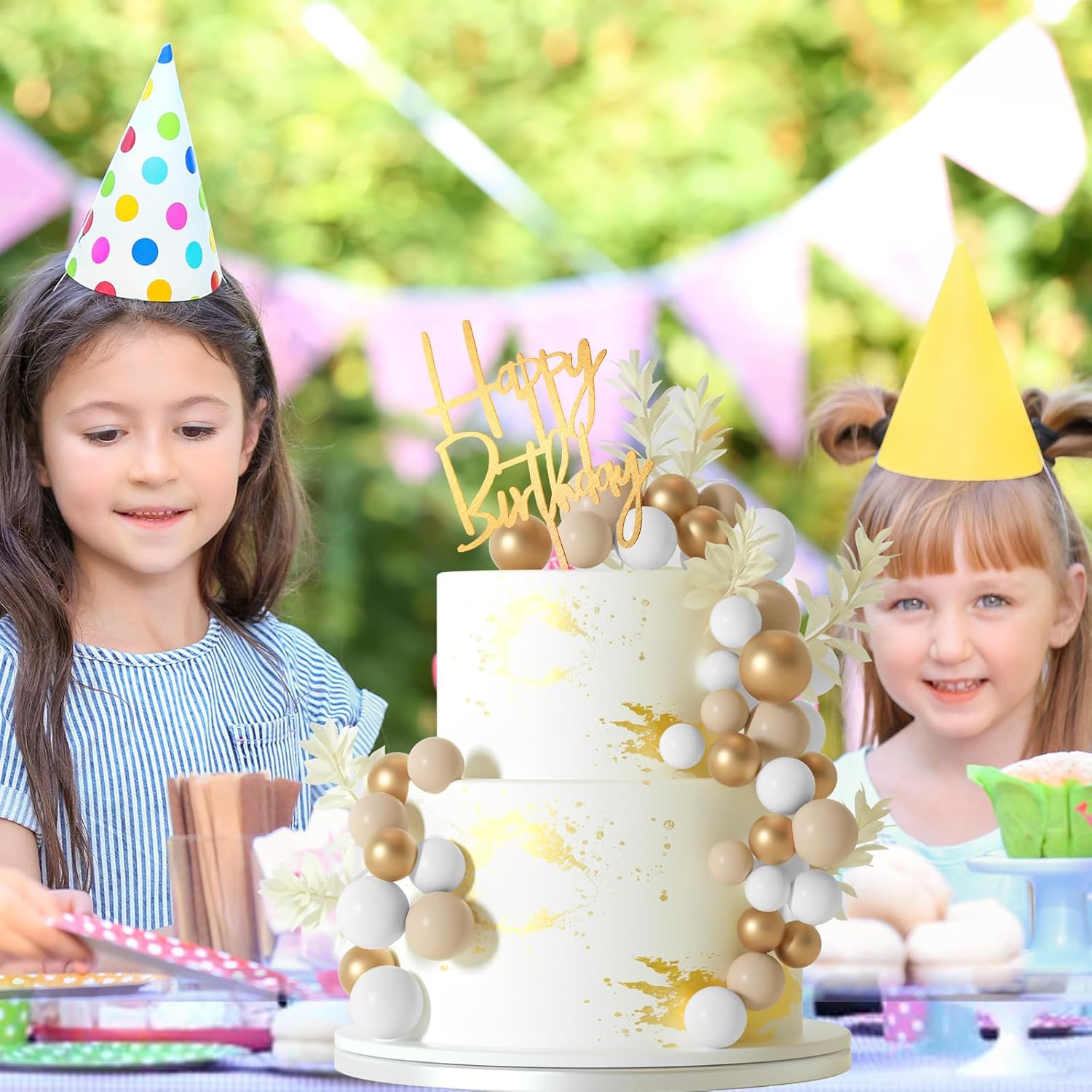 • Package included : 10pcs white grass cake toppers, 1pc happy birthday cake topper, 14pcs khaki balls, 14pcs gold balls, 14pcs white balls.