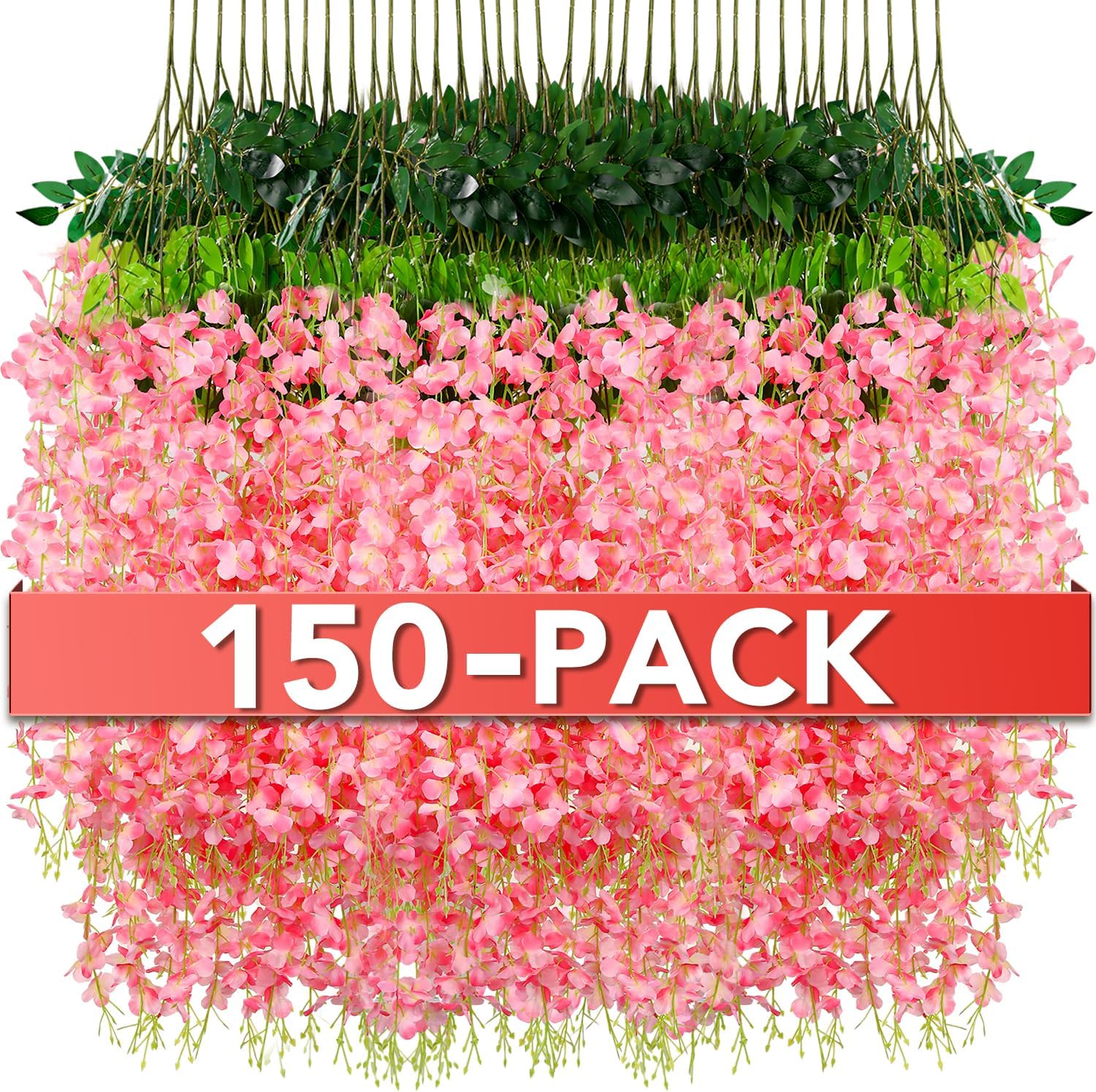 • Include Content:This package includes 150 pink artificial wisteria vines, measuring 3.6 feet in length. Each vine has three branches, measuring 23.6 inches in length. There are 29 pink wisteria flowers on each branch