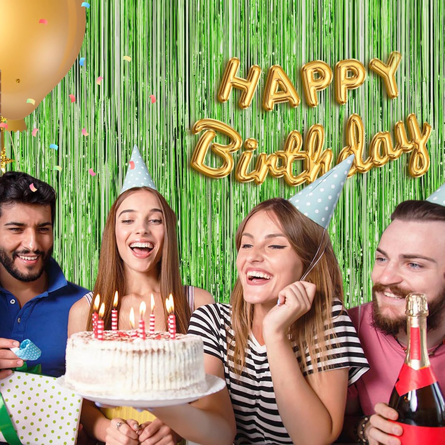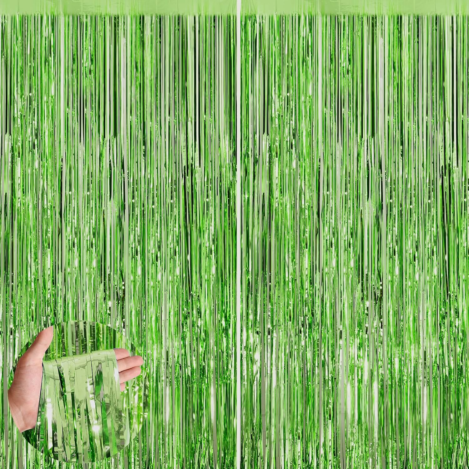 Grass Green Fringe Curtain Party Streamers 2Pack 3.3 x 8.3 Ft Foil Fringe Backdrop Curtains for Birthday Wedding Bridal Baby Shower Holiday Tinsel Streamers Green Party Decorations Door Streamer