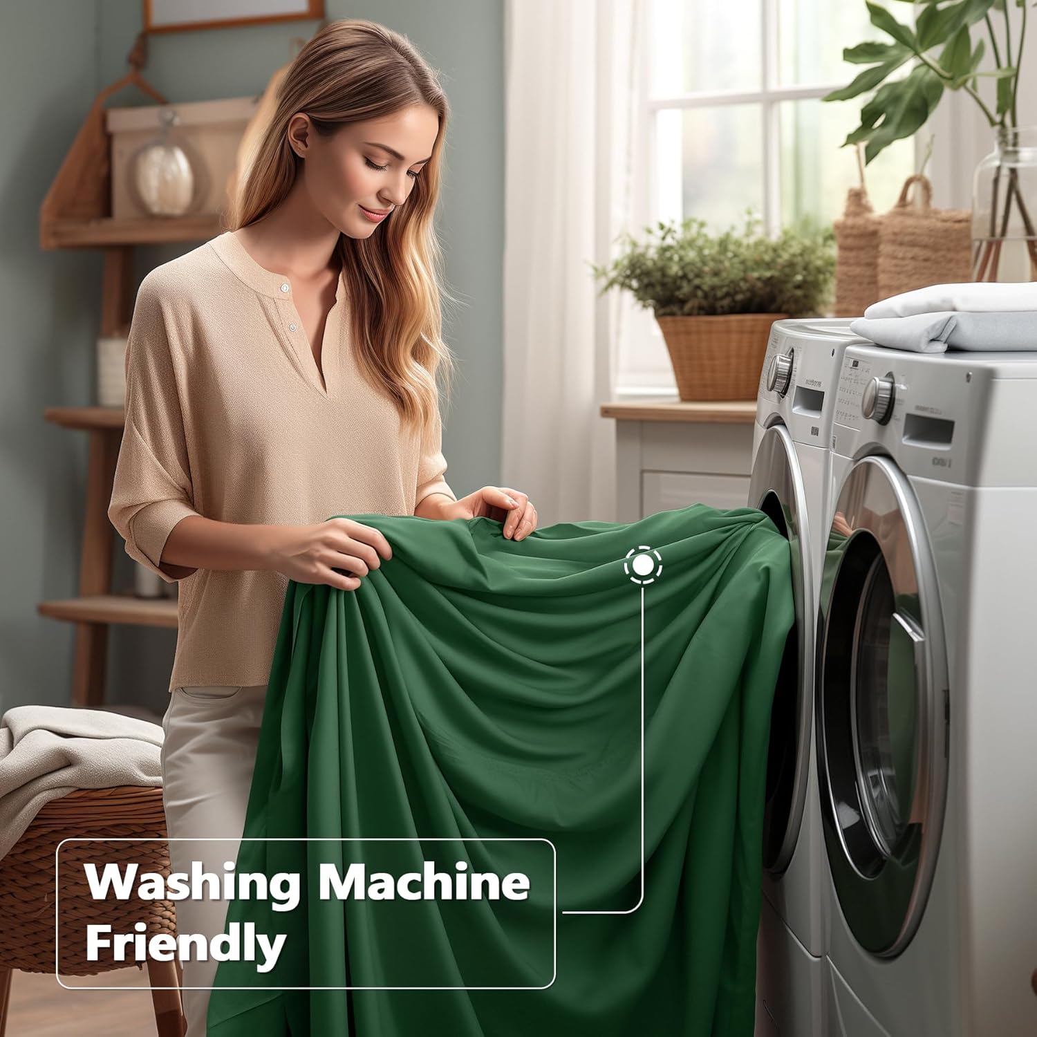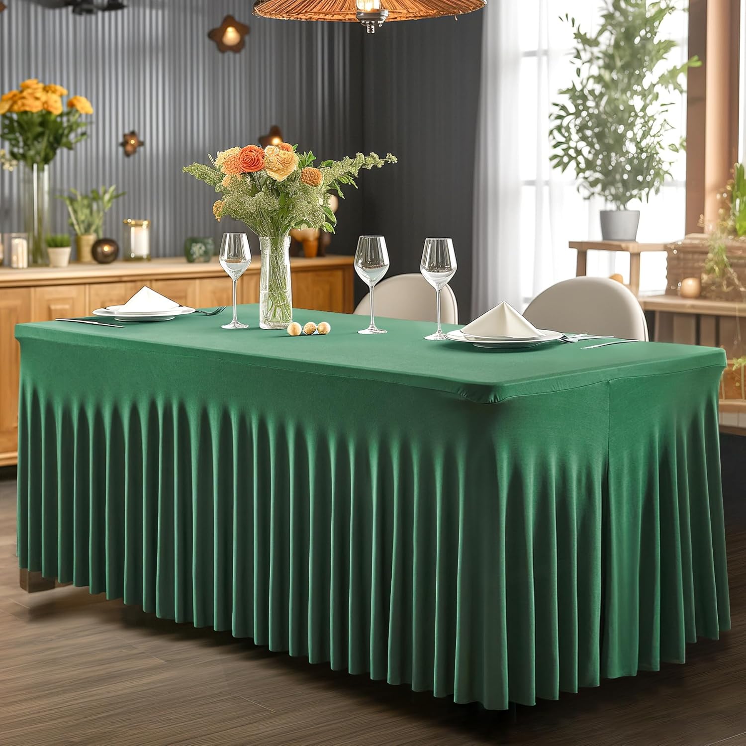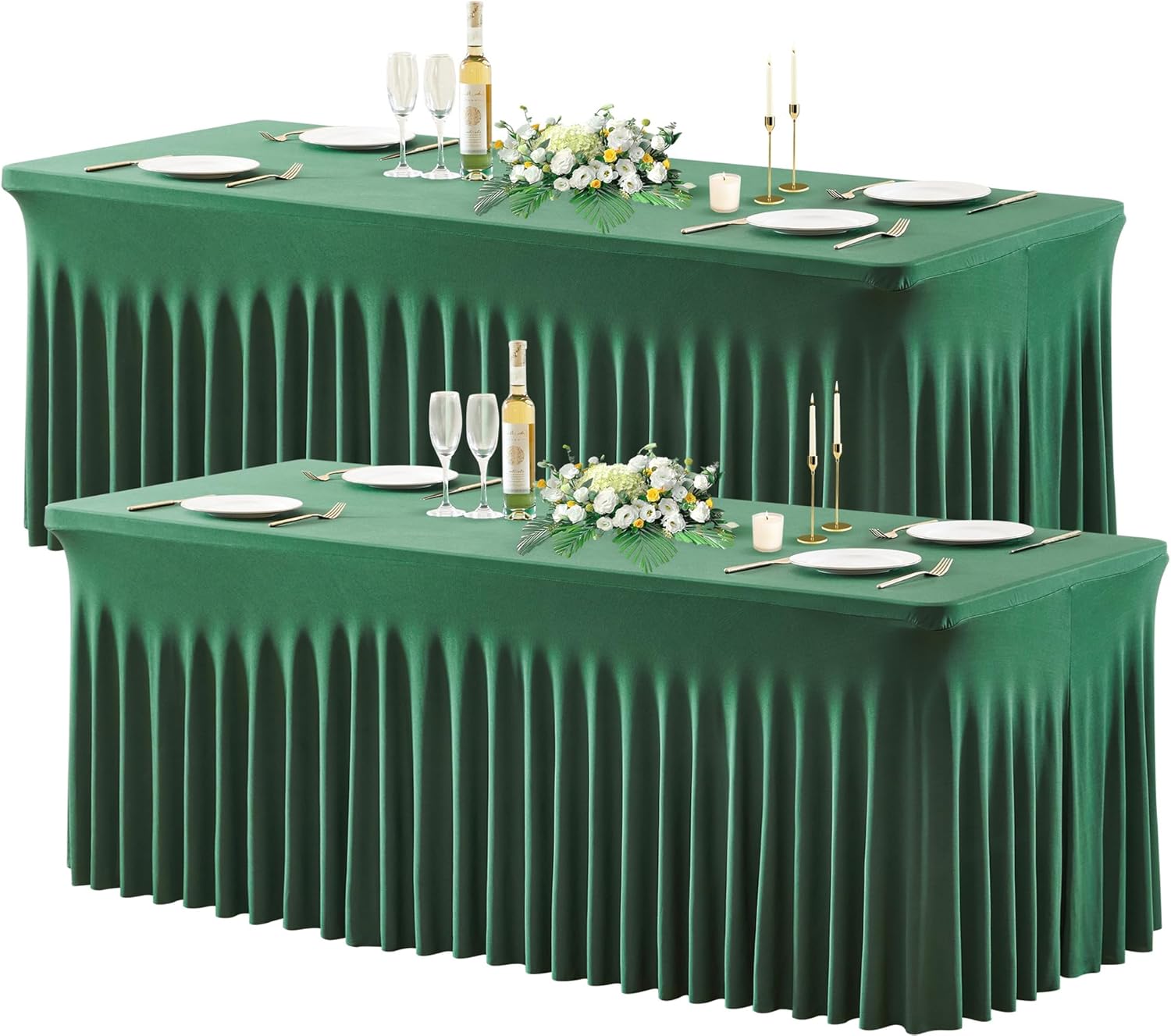 Wish Care 2 Pack Hunter Green Stretch Spandex Table Clothes for 8 Foot Rectangle Tables, 8FT Wrinkle Free Fitted Tablecloths Ruffles Design Table Cover for Party, Banquet, Wedding and Events
