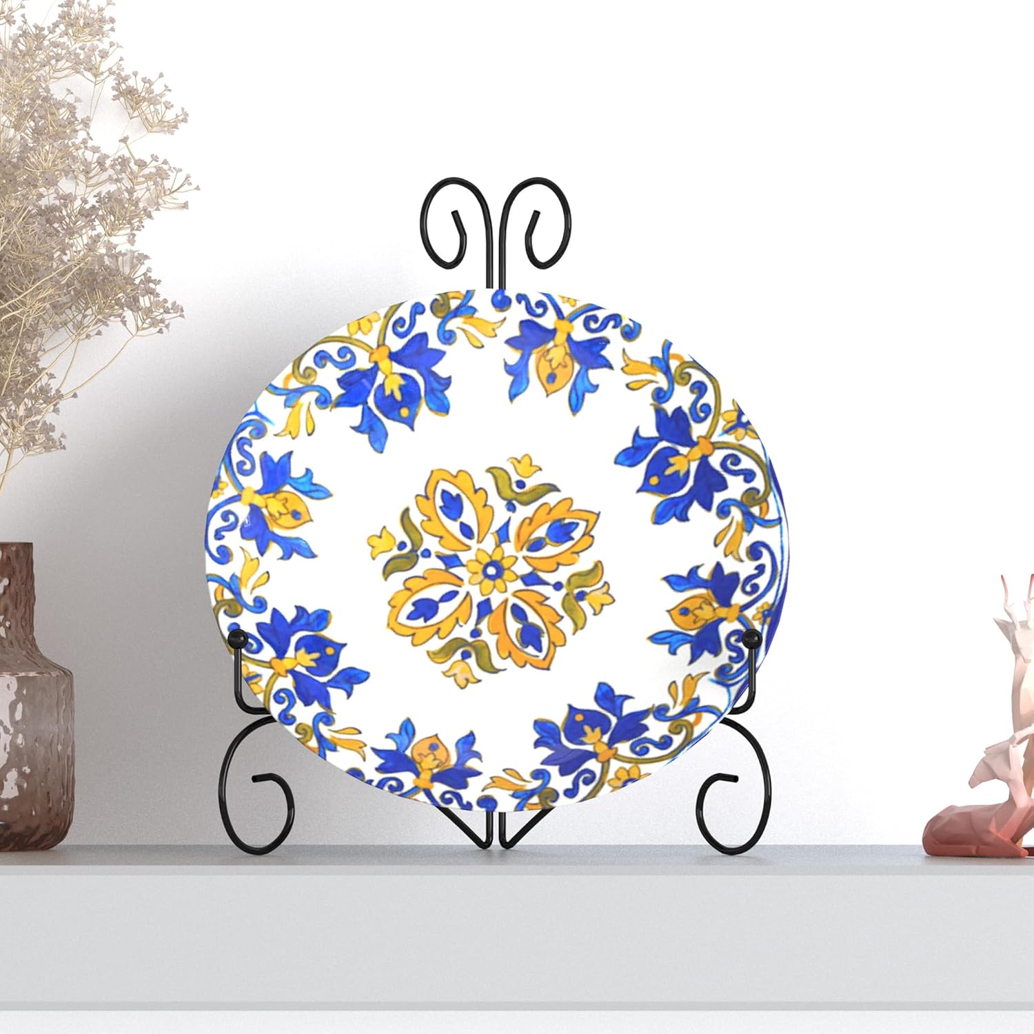 • Elevate Your Space with Stylish Plate Holders: Elevate your space with our stylish plate holders. Beautifully designed with simple and smooth lines, they serve as both functional items and standalone pieces of art. Inject sophistication and style into your vacant desks or display shelves with these minimalist iron stands. Their sleek design seamlessly blends with diverse interiors, enhancing the aesthetics of any room.