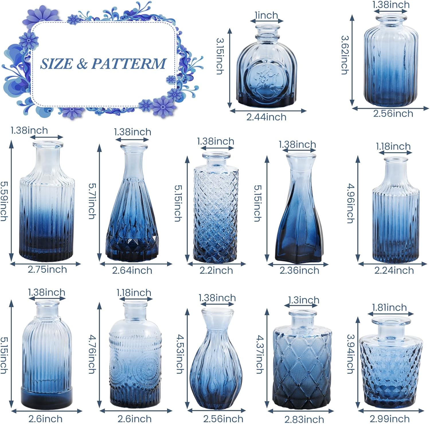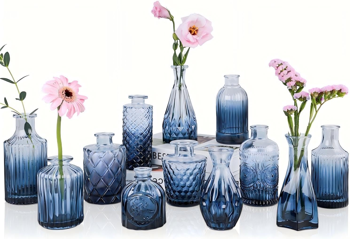 • Vintage Design: UPBUD bud pattern vases evoke a nostalgic charm, adding a vintage touch to your living space and enhancing the aesthetic appeal of your home. This collection features 12 glass vases of varying sizes and shapes, effortlessly elevating your table setup to create a truly distinctive ambiance.
