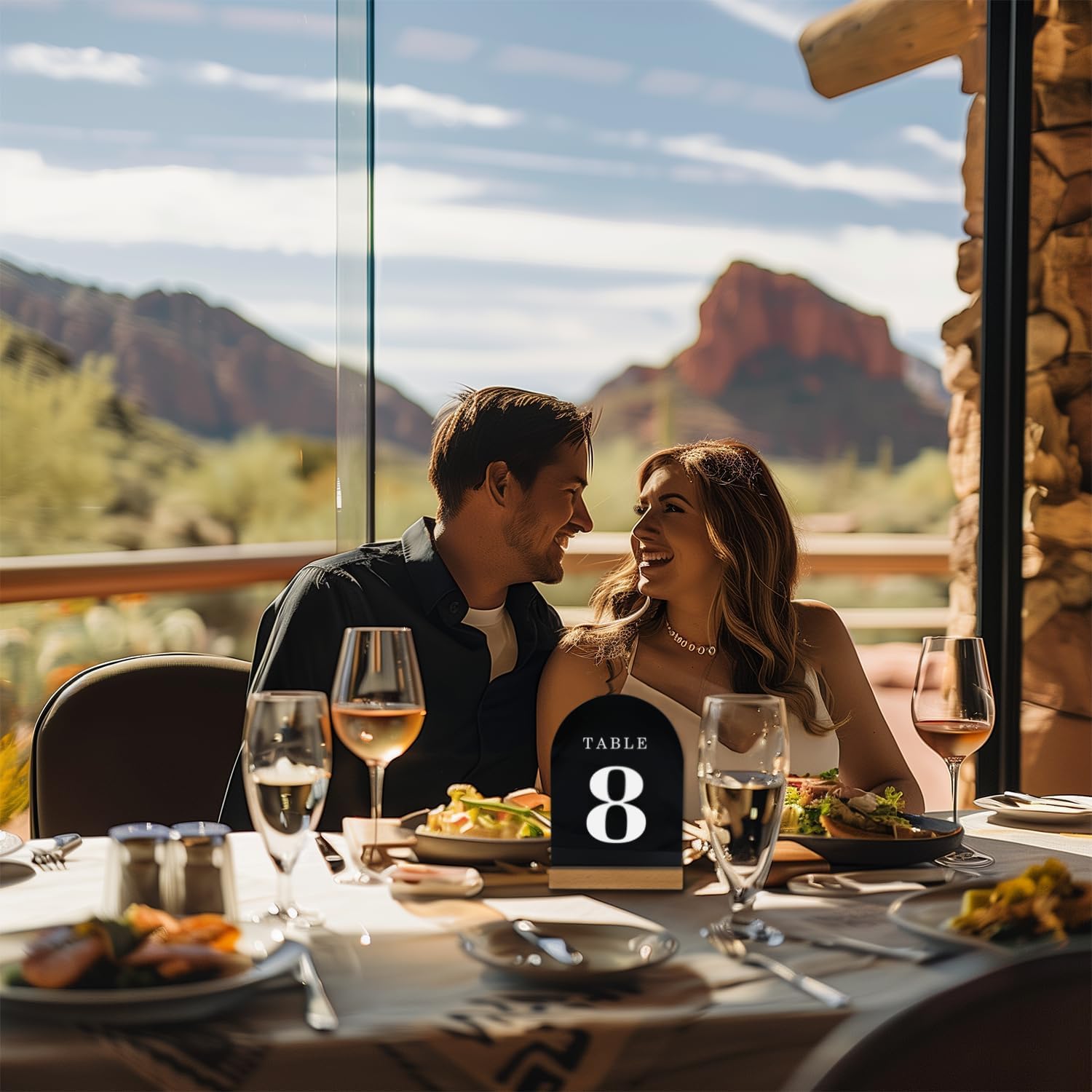 • Elevate Your Event- Our Black table numbers feature high-quality acrylic sheets and natural wood stands. Add a touch of elegance and sophistication to your event with these exquisite table numbers.