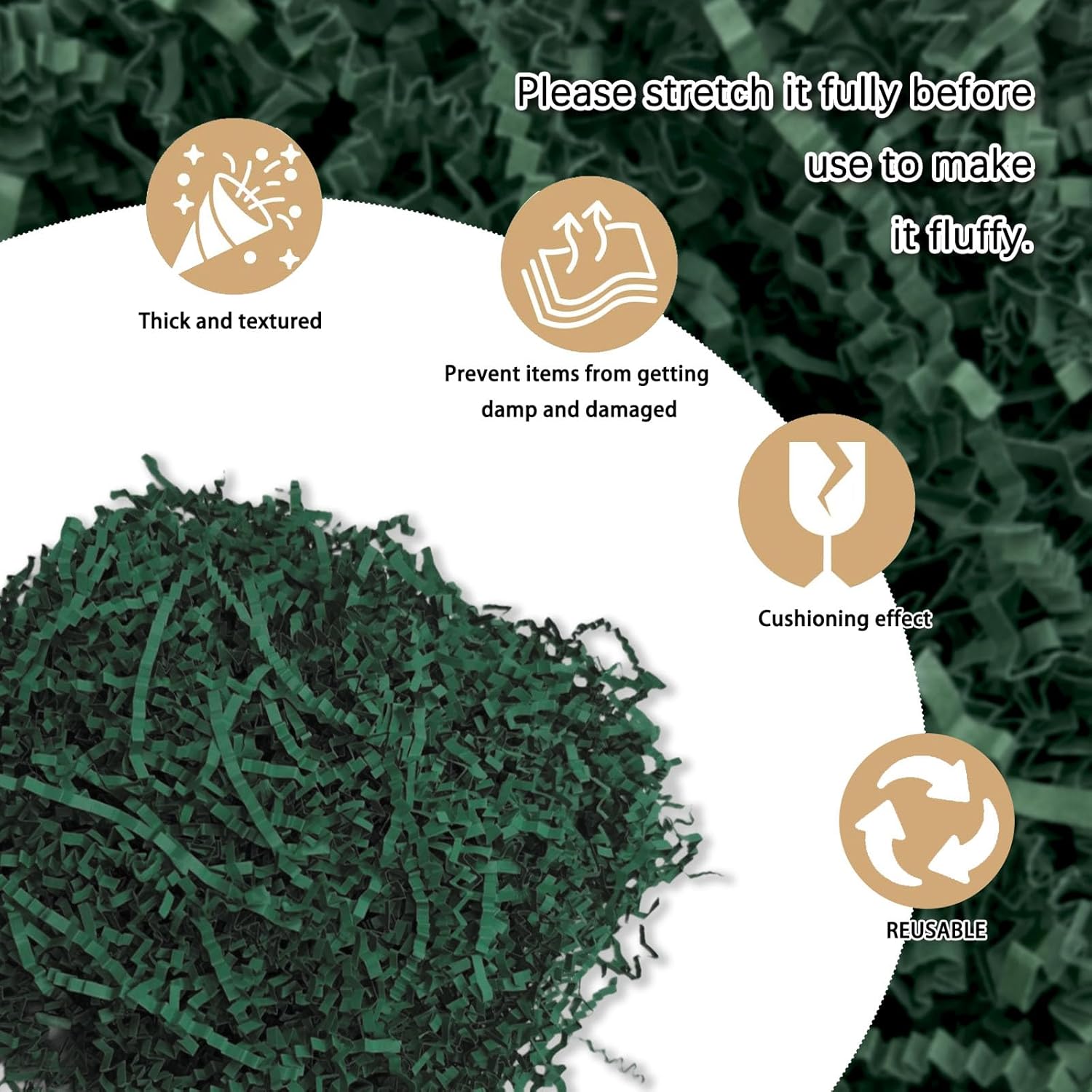 • 【Crinkle Cut Paper Shred】Display your products with fun and colorful dark green Crinkle Cut Paper to create a memorable gift-giving experience with your tasteful choice of gift-wrapping fillers. Ensuring your gifts are beautifully presented. With 1 LB of crinkle cut paper shred filler, you'll have plenty to fill those extra spaces in your packages, is suitably provides maximum protection for your gifts.