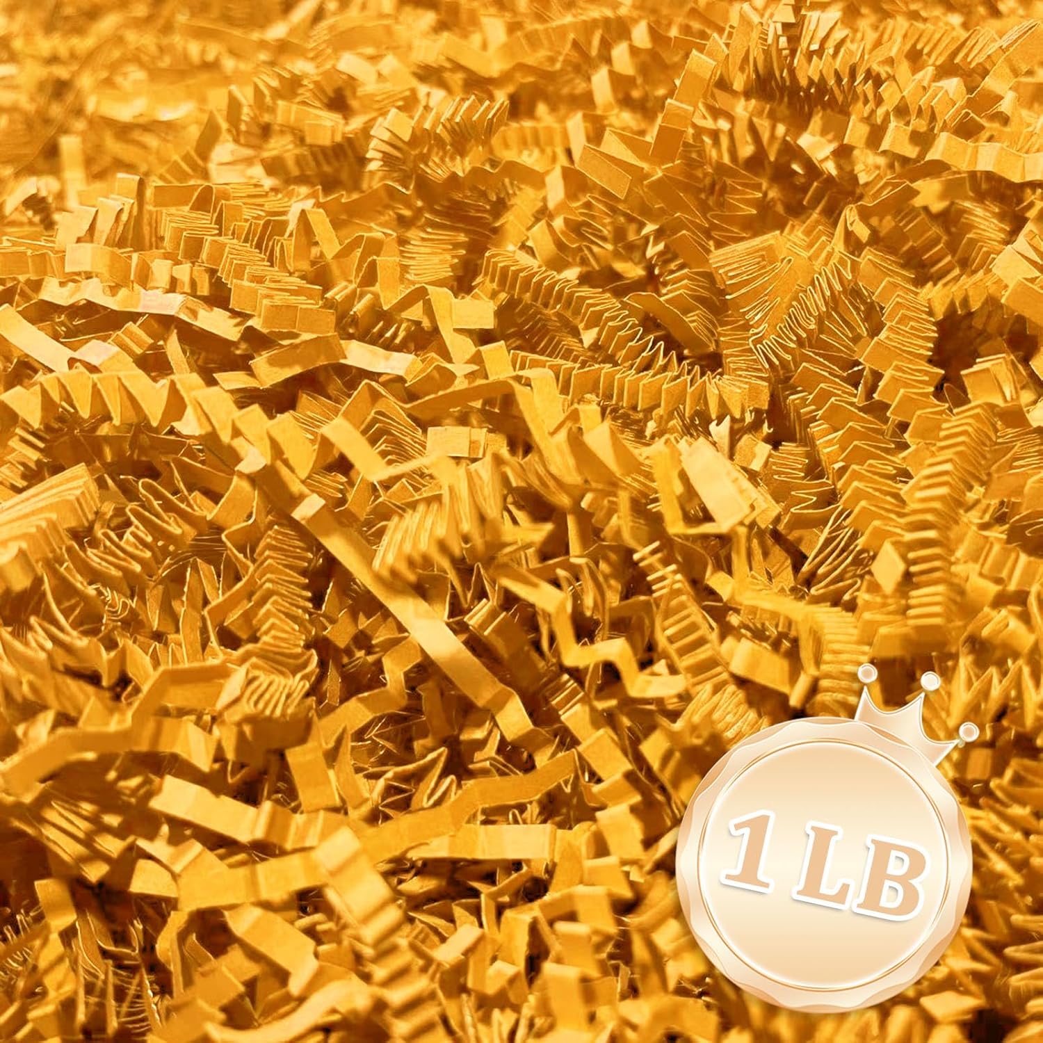 • 【Crinkle Cut Paper Shred】Display your products with fun and colorful Crinkle Cut Paper to create a memorable gift-giving experience with your tasteful choice of gift-wrapping fillers. Ensuring your gifts are beautifully presented. With 1 LB golden of crinkle cut paper shred filler, you'll have plenty to fill those extra spaces in your packages, is suitably provides maximum protection for your gifts.