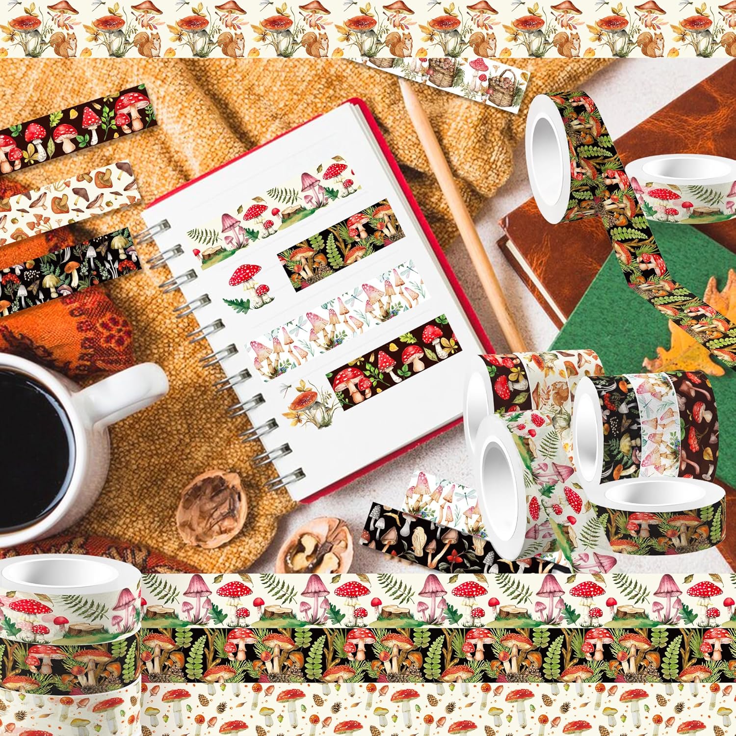 • DIY Art Crafts Size]: Mushroom washi tape each roll is 200inch in length and 0.6 inch in width. 2400 inch in total length, which is enough for daily. Meet your DIY, handmade, gift-wrapping needs