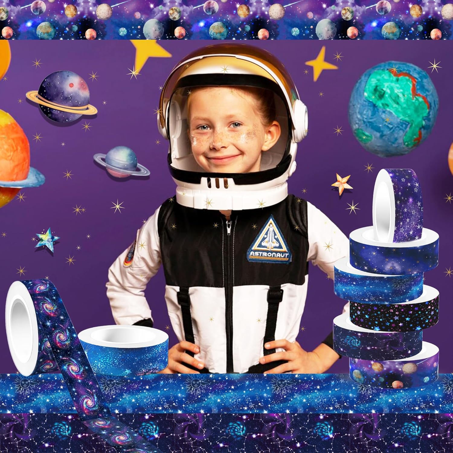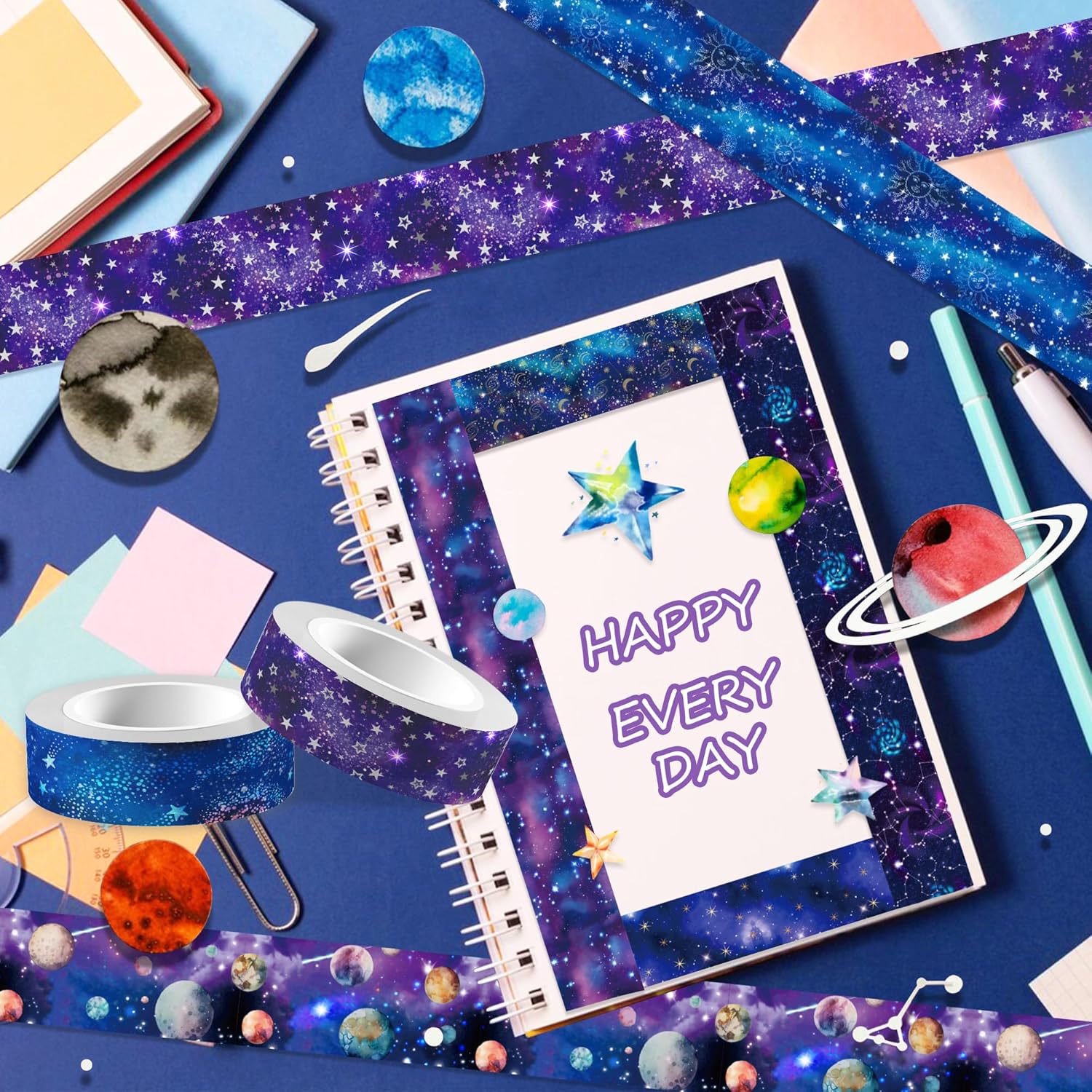 • DIY Art Crafts Size: Galaxy washi tape each roll is 200inch in length and 0.6 inch in width. 2400 inch in total length, which is enough for daily. Meet your DIY, handmade, gift-wrapping needs