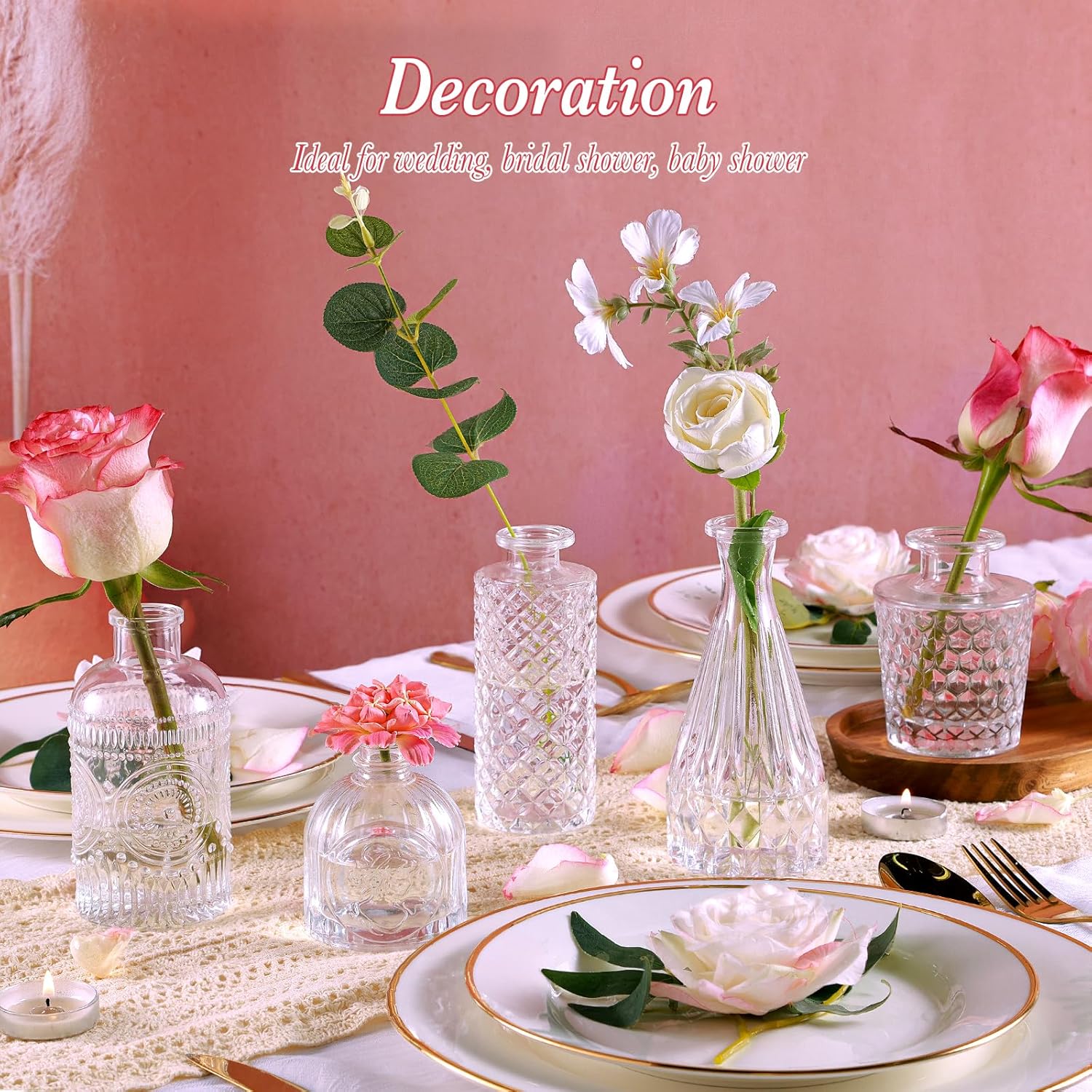 • Exquisite Décor: These assorted vases not only capture and reflect light beautifully but also feature a textured exterior design that exudes a vintage chic bohemian aesthetic. Perfect for creating breathtaking centerpieces, these gorgeous little vases will undoubtedly elevate the ambiance of any space.