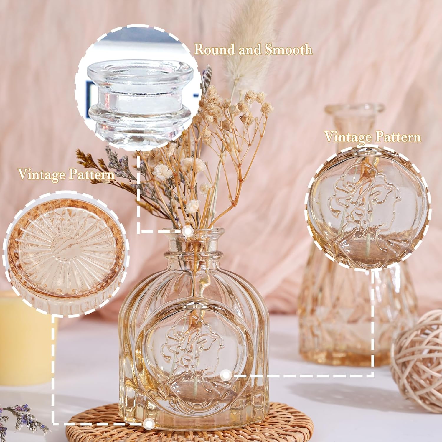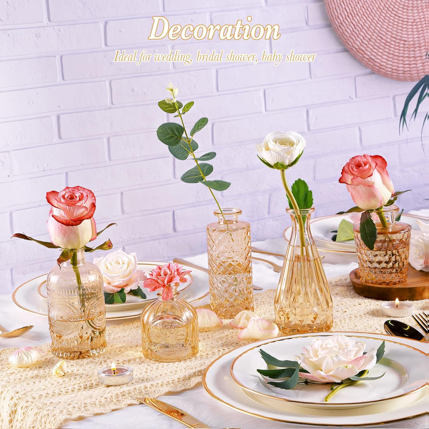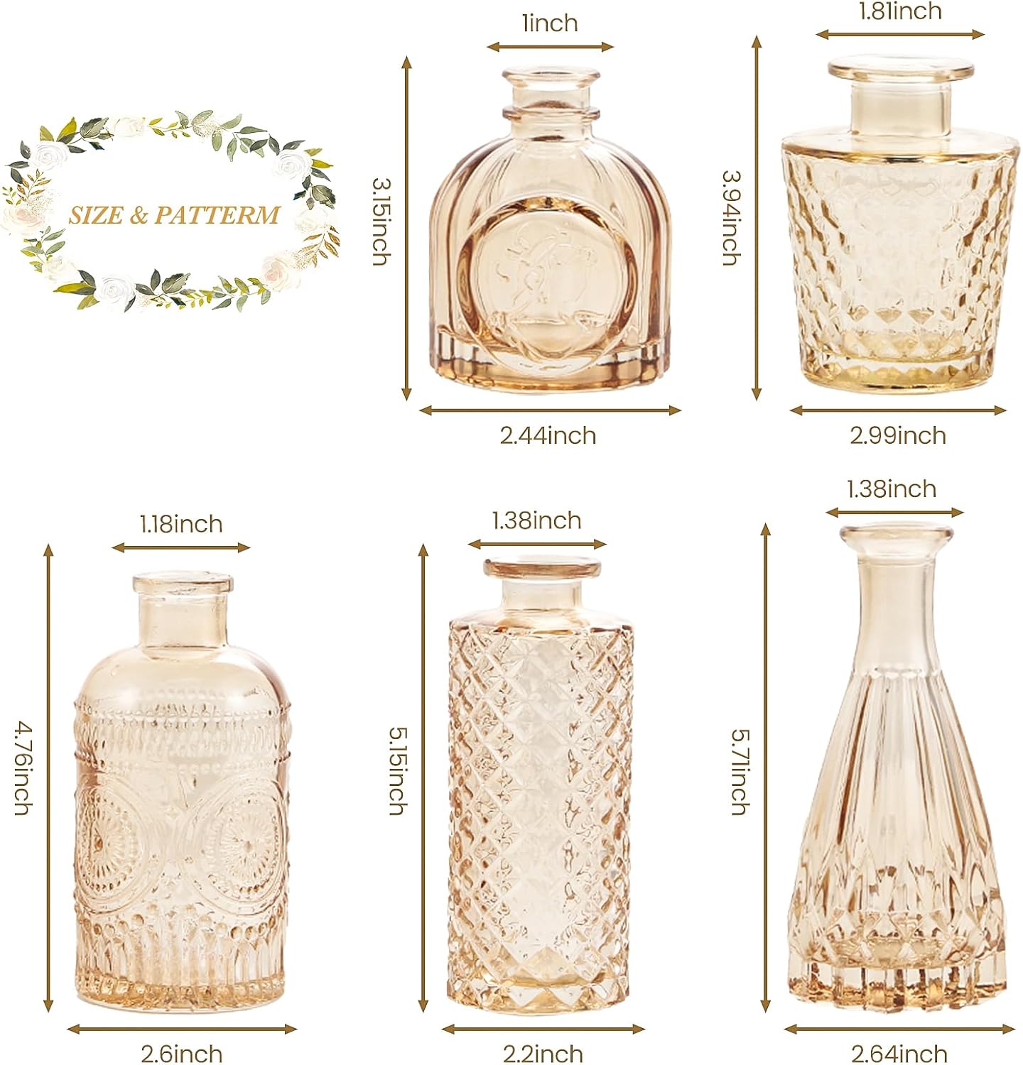 Amber Glass Bud Vases Set of 5, Gold Flower Vase for Centerpieces, Small Clear Vases in Bulk for Wedding Decorations, Vintage Vase for Table, Recepetion, Home Décor