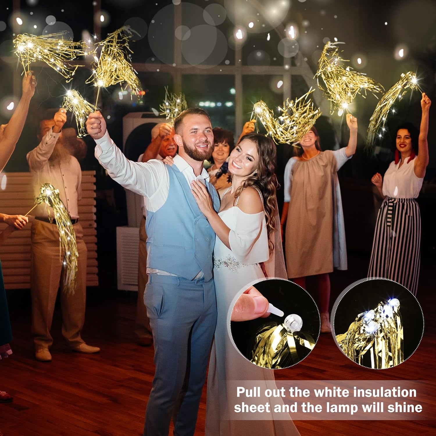 100 Pcs Lighted Wedding Wands LED Tinsel Wands Light up Streamers Sparklers for Wedding Send Off and Exits Birthday Party Props Favors(Gold)