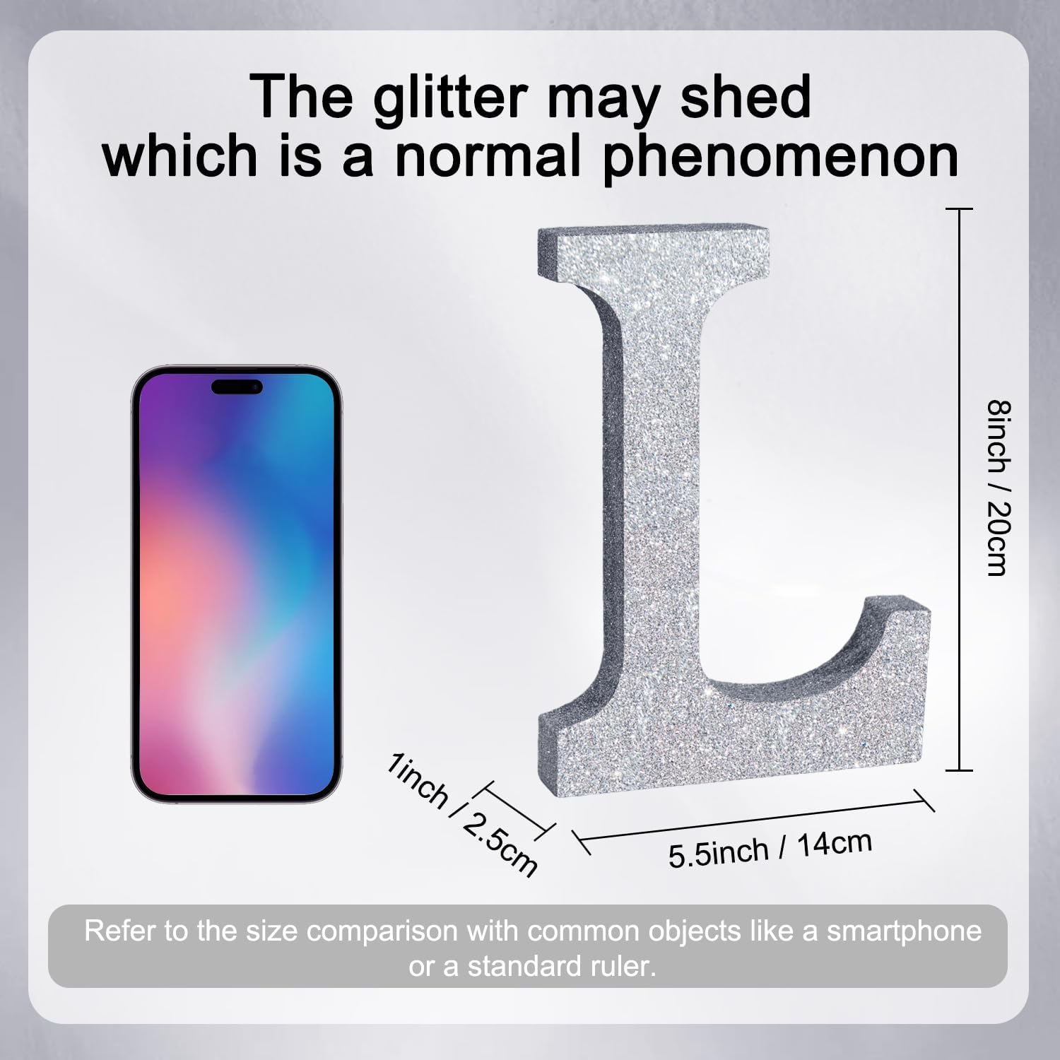 • ITEM INFORMATION AND SIZE: 1 Pcs * L Silver Glitter Letter Ornament. Size: 8 * 5.8 * 1 Inches (20*15*2.5 CM). Before purchasing, Please check the size carefully to make sure it meets your needs