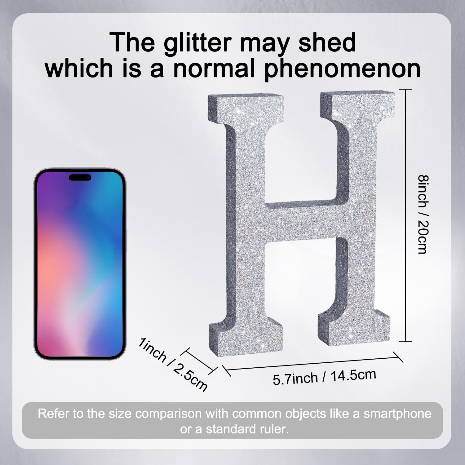 • ITEM INFORMATION AND SIZE: 1 Pcs * H Silver Glitter Letter Ornament. Size: 8 * 5.8 * 1 Inches (20*15*2.5 CM). Before purchasing, Please check the size carefully to make sure it meets your needs
