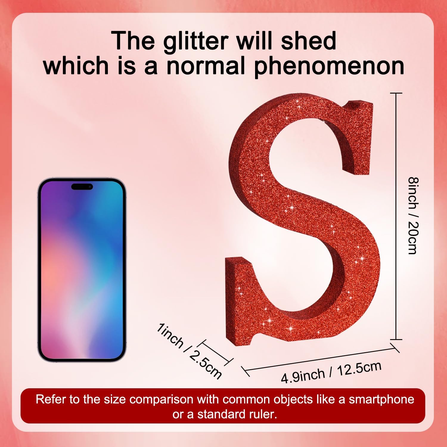 • ITEM INFORMATION AND SIZE: 1 Pcs * S Red Glitter Letter Ornament. Size: 8 * 5.8 * 1 Inches (20*15*2.5 CM). Before purchasing, Please check the size carefully to make sure it meets your needs
