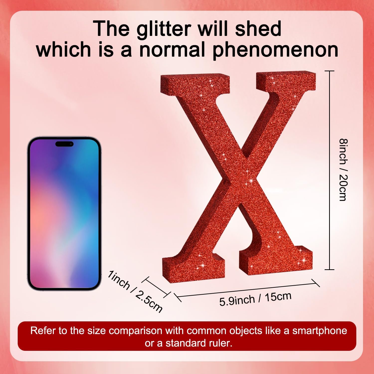 • ITEM INFORMATION AND SIZE: 1 Pcs * X Red Glitter Letter Ornament. Size: 8 * 5.8 * 1 Inches (20*15*2.5 CM). Before purchasing, Please check the size carefully to make sure it meets your needs