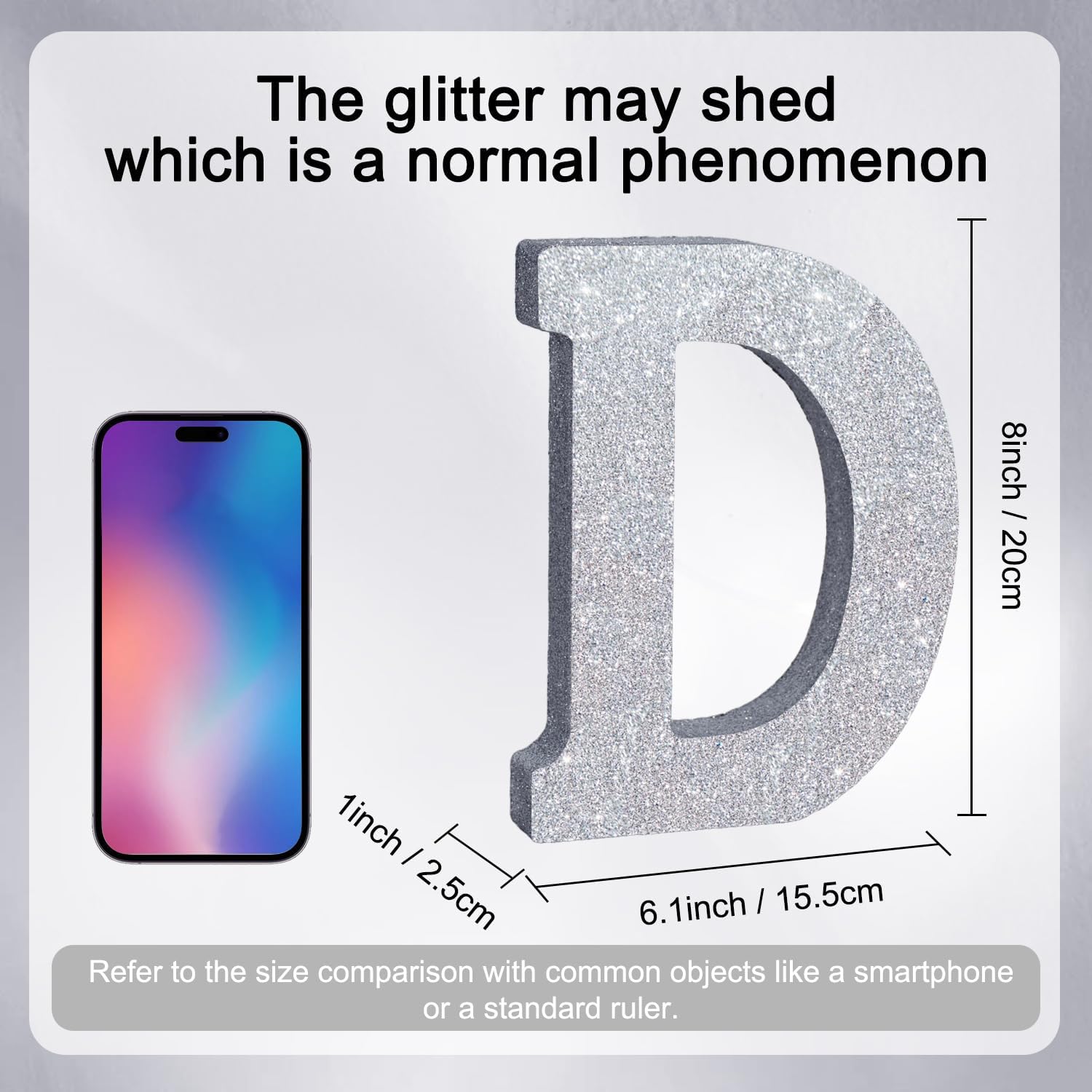 • ITEM INFORMATION AND SIZE: 1 Pcs * D Silver Glitter Letter Ornament. Size: 8 * 5.8 * 1 Inches (20*15*2.5 CM). Before purchasing, Please check the size carefully to make sure it meets your needs