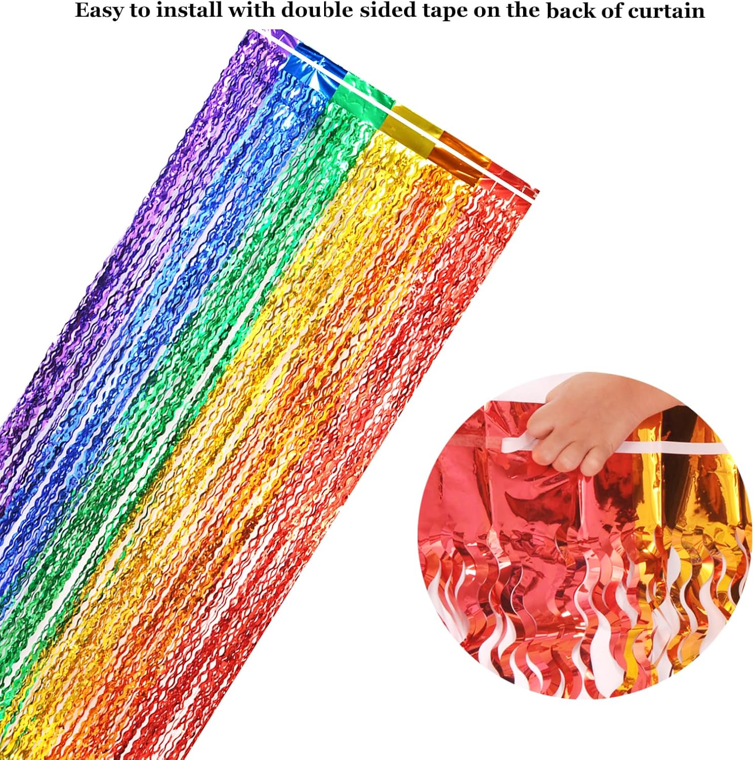 • Packing Included:4 packs rainbow tinsel foil fringe curtains party photo backdrop,Each pack curtains size is 3.3ft x 6.6ft, enough length for decorate your party