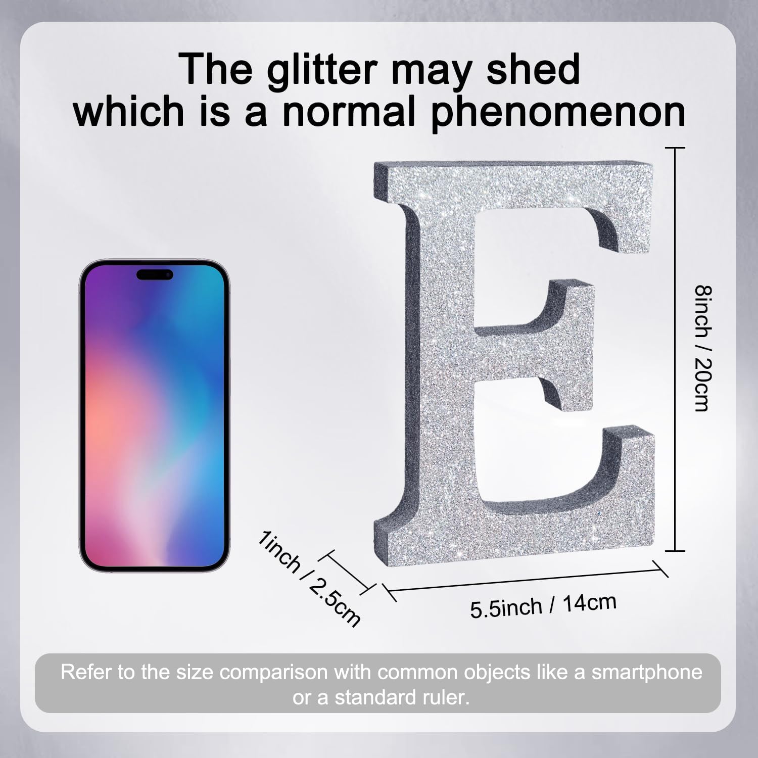 • ITEM INFORMATION AND SIZE: 1 Pcs * E Silver Glitter Letter Ornament. Size: 8 * 5.8 * 1 Inches (20*15*2.5 CM). Before purchasing, Please check the size carefully to make sure it meets your needs