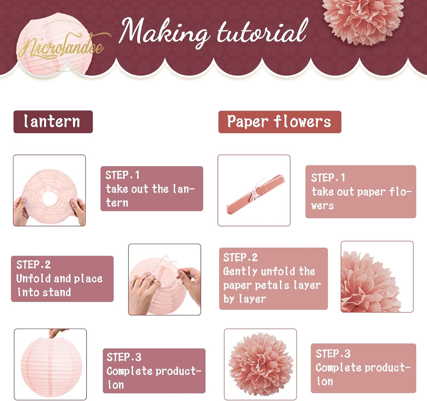 • Simple DIY with Step-by-Step Guidance – Includes 6 paper lanterns and 6 tissue pom poms with detailed instructions. Takes approximately 30 minutes to assemble for a stunning backdrop—perfect for patient decorators who love hands-on projects