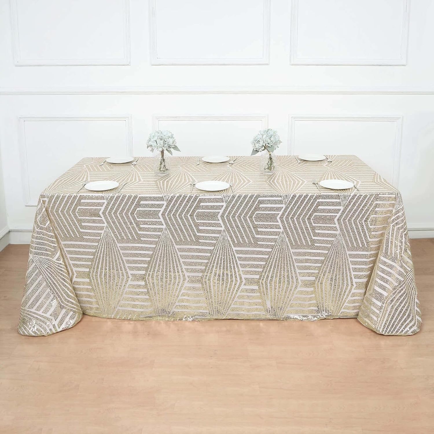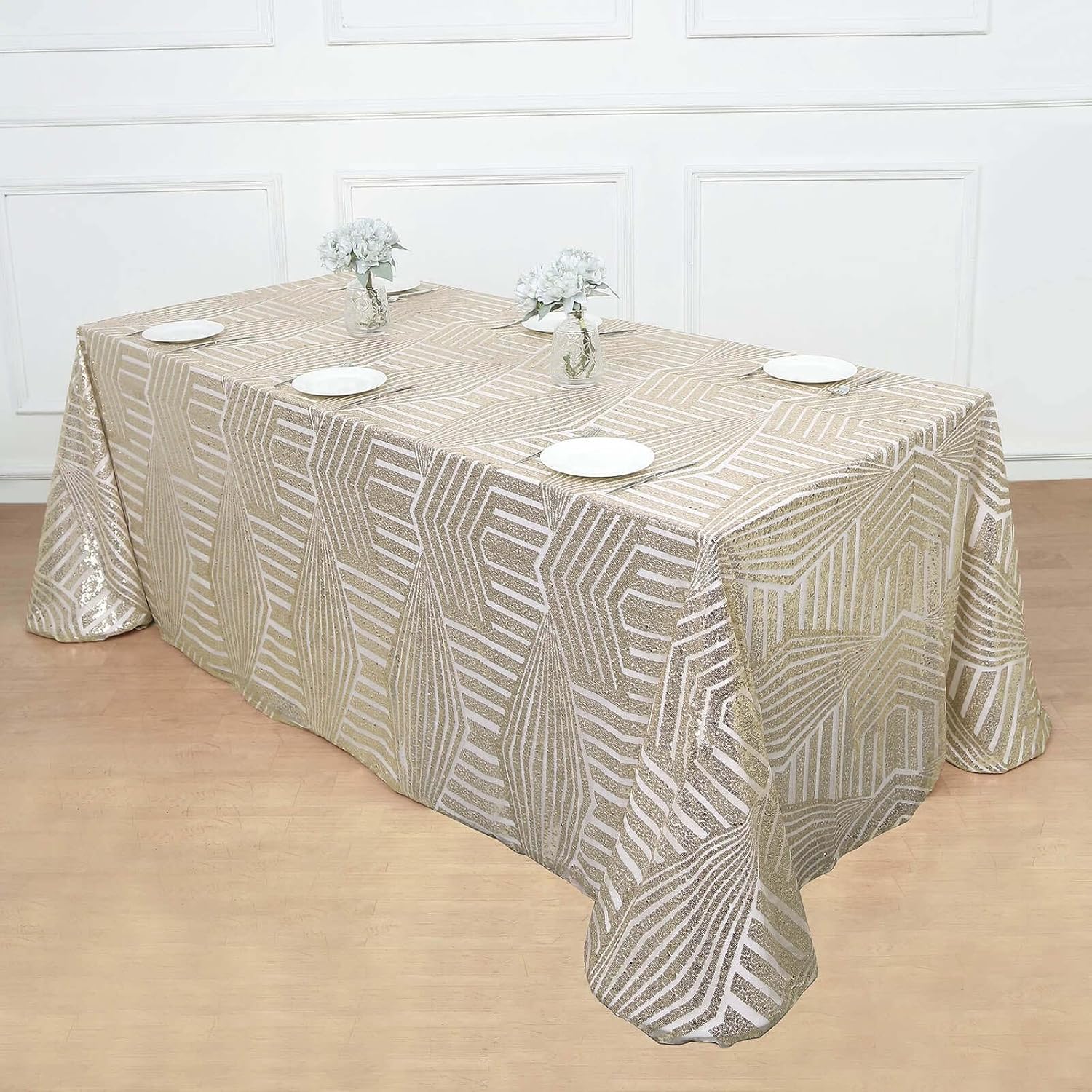 Efavormart 90"X132" Champagne Sparkly Sequin Geometric Tulle Rectangular Tablecloth