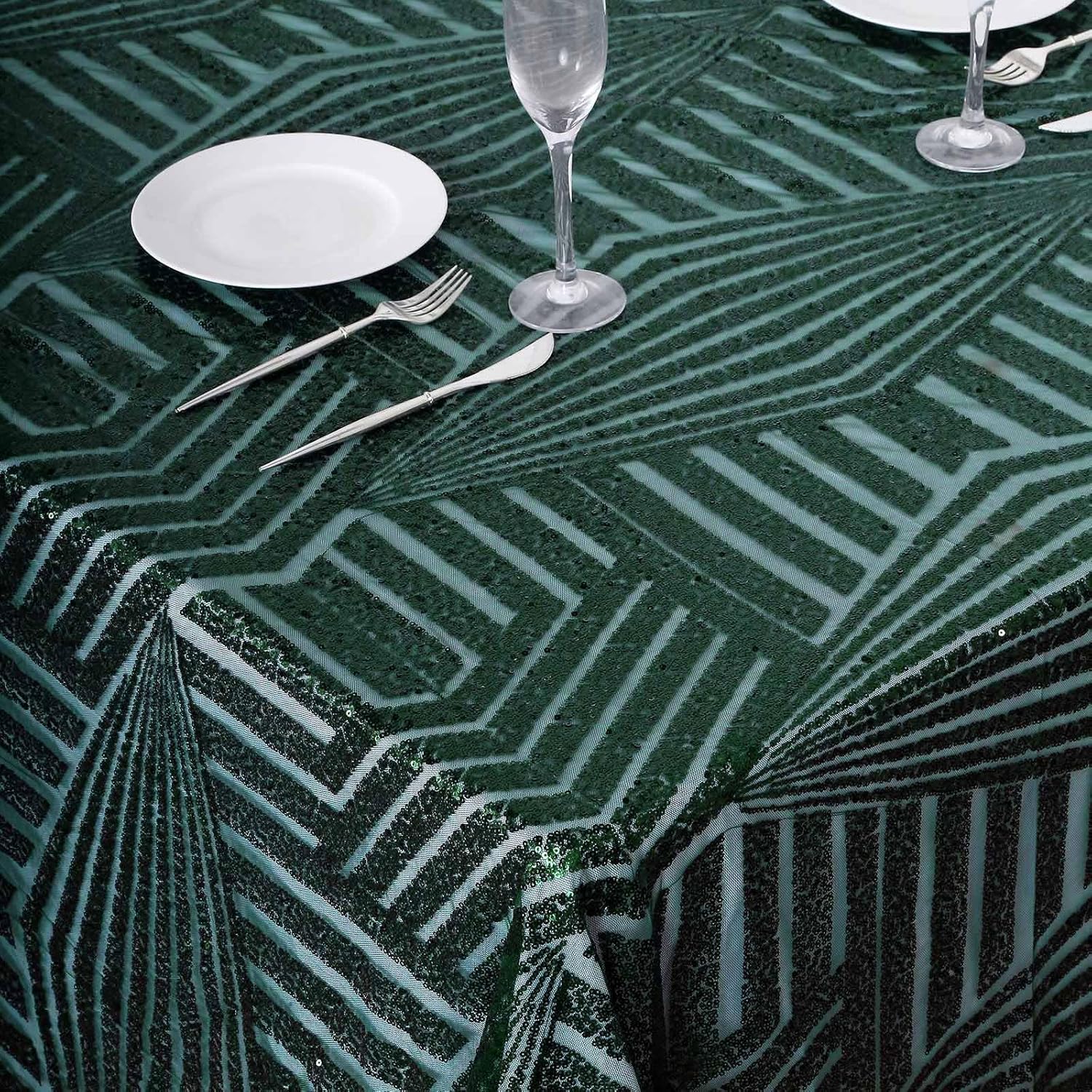 Efavormart 90"X132" Hunter Emerald Green Sparkly Sequin Geometric Tulle Rectangular Tablecloth