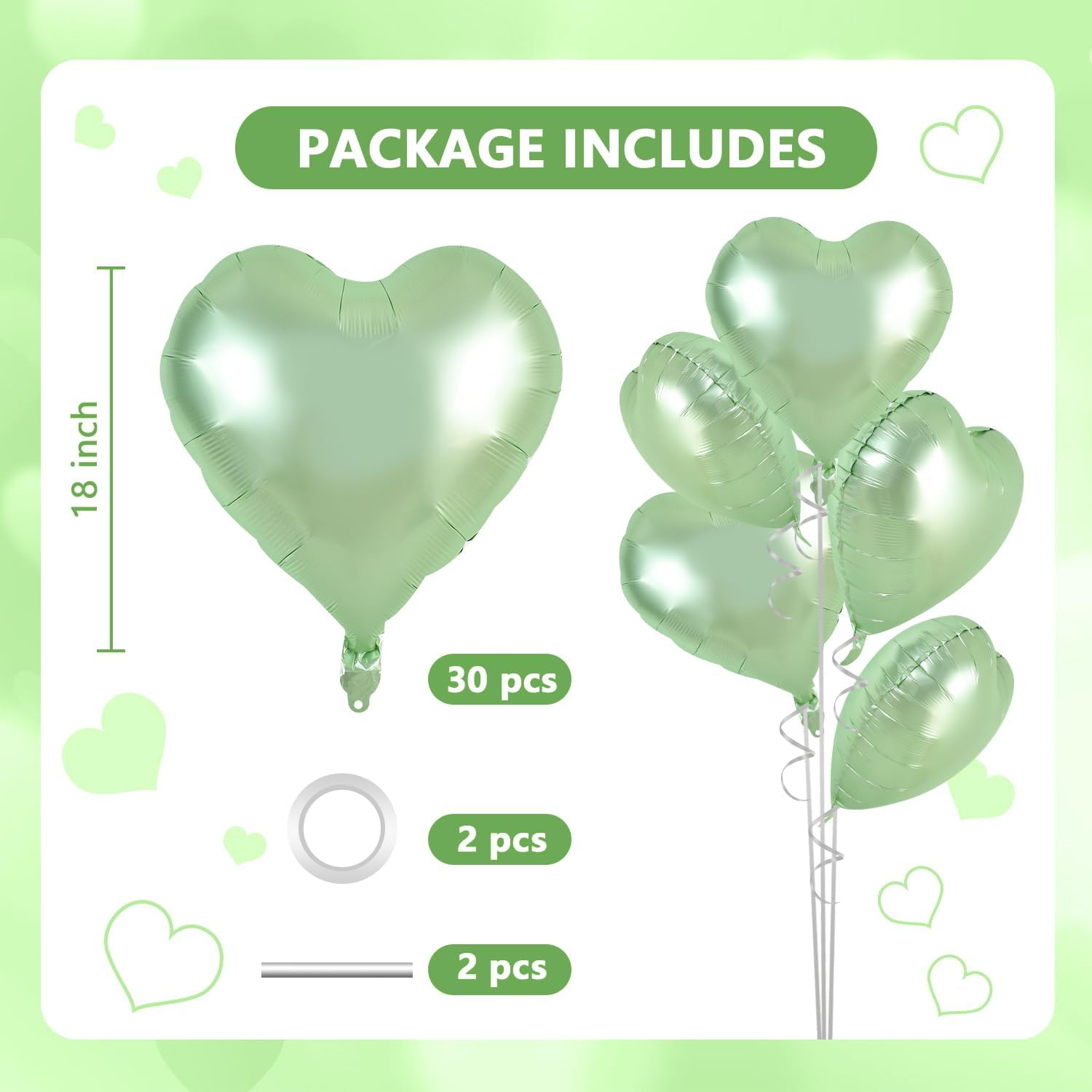 TONIFUL 30Pcs 18 Inch Olive Green Heart Balloons Sage Green Heart Shape Foil Mylar Balloons Decoration for Birthday Valentine's Day Wedding Bridal Shower Anniversary Engagement Party Supplies