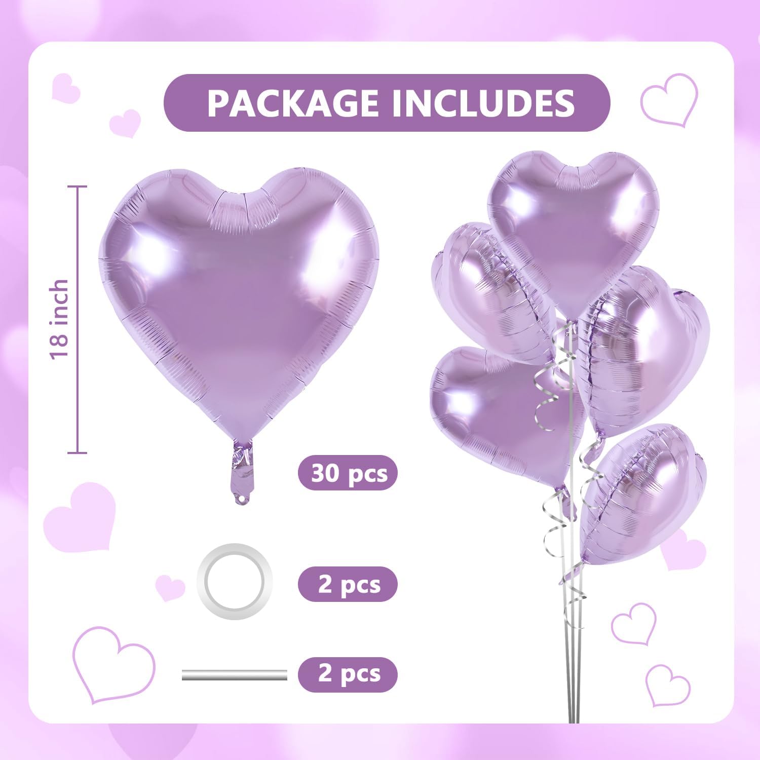 TONIFUL 30Pcs 18 Inch Purple Heart Balloons Purple Heart Shape Foil Mylar Balloons Decoration for Birthday Valentine's Day Wedding Bridal Shower Anniversary Engagement Party Supplies