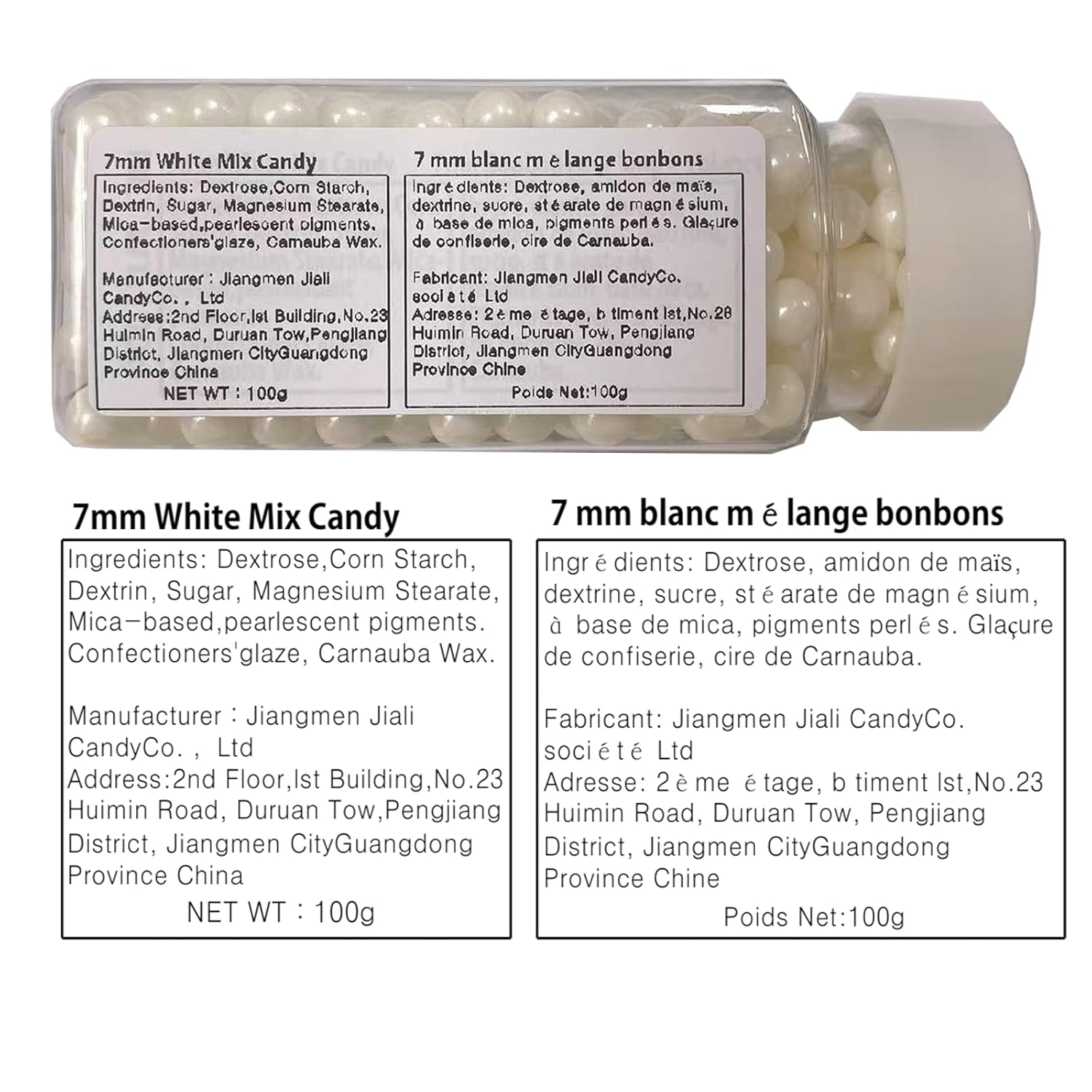 • 7mm White Pearl Sprinkles: Each bottle weighs 3.52 oz (100 g)