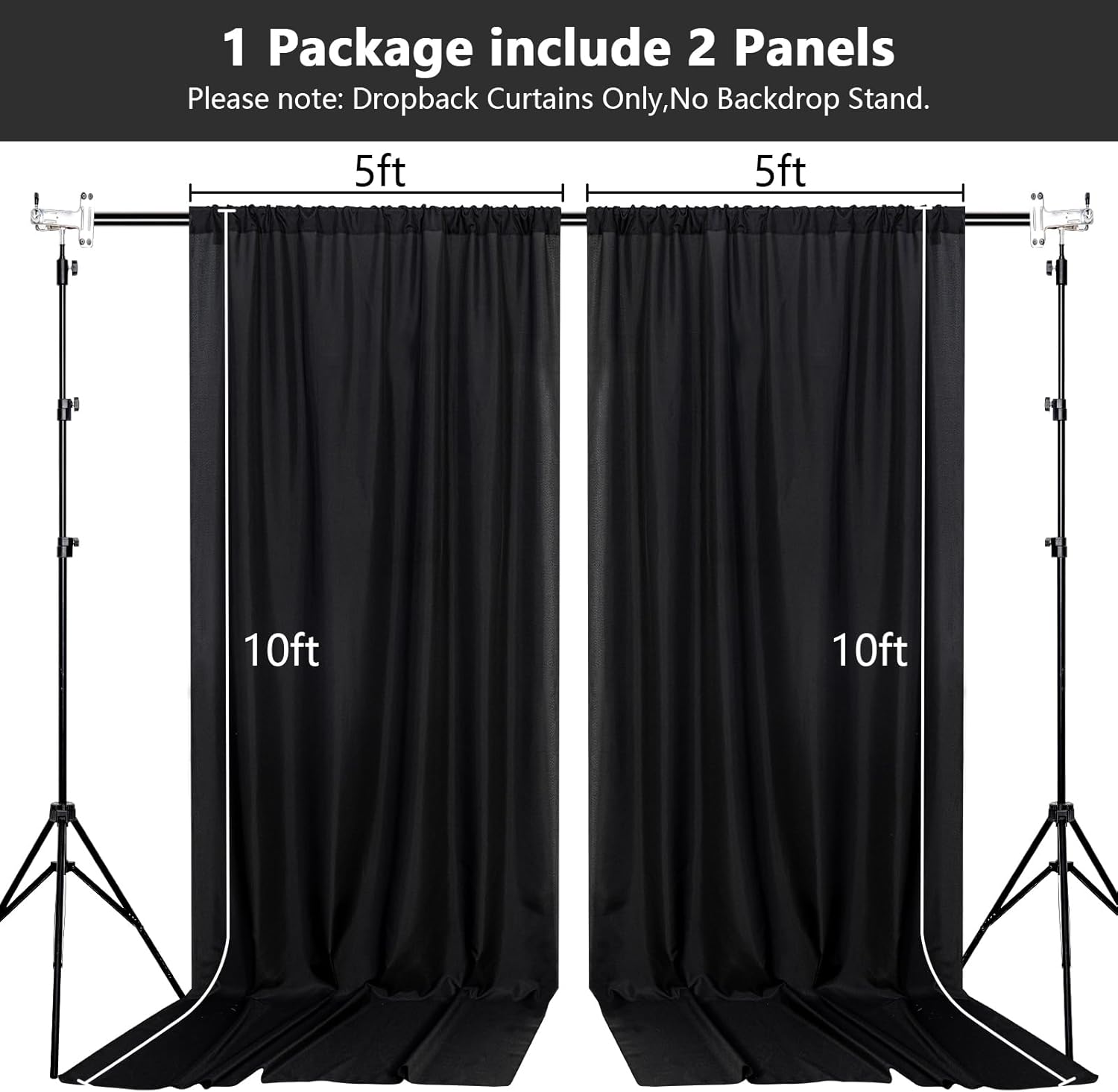 • DIMENSIONS: Each order is for 2 (two) polyester curtains. Each curtain measures 5 feet wide x 10 feet high. Entire backdrop measures 10 feet wide x 10 feet high.Each curtain panel comes with 4 inch rod pocket on top, fit up to any standard rods. (Please note: Dropback Curtains Only,No Backdrop Stand.)